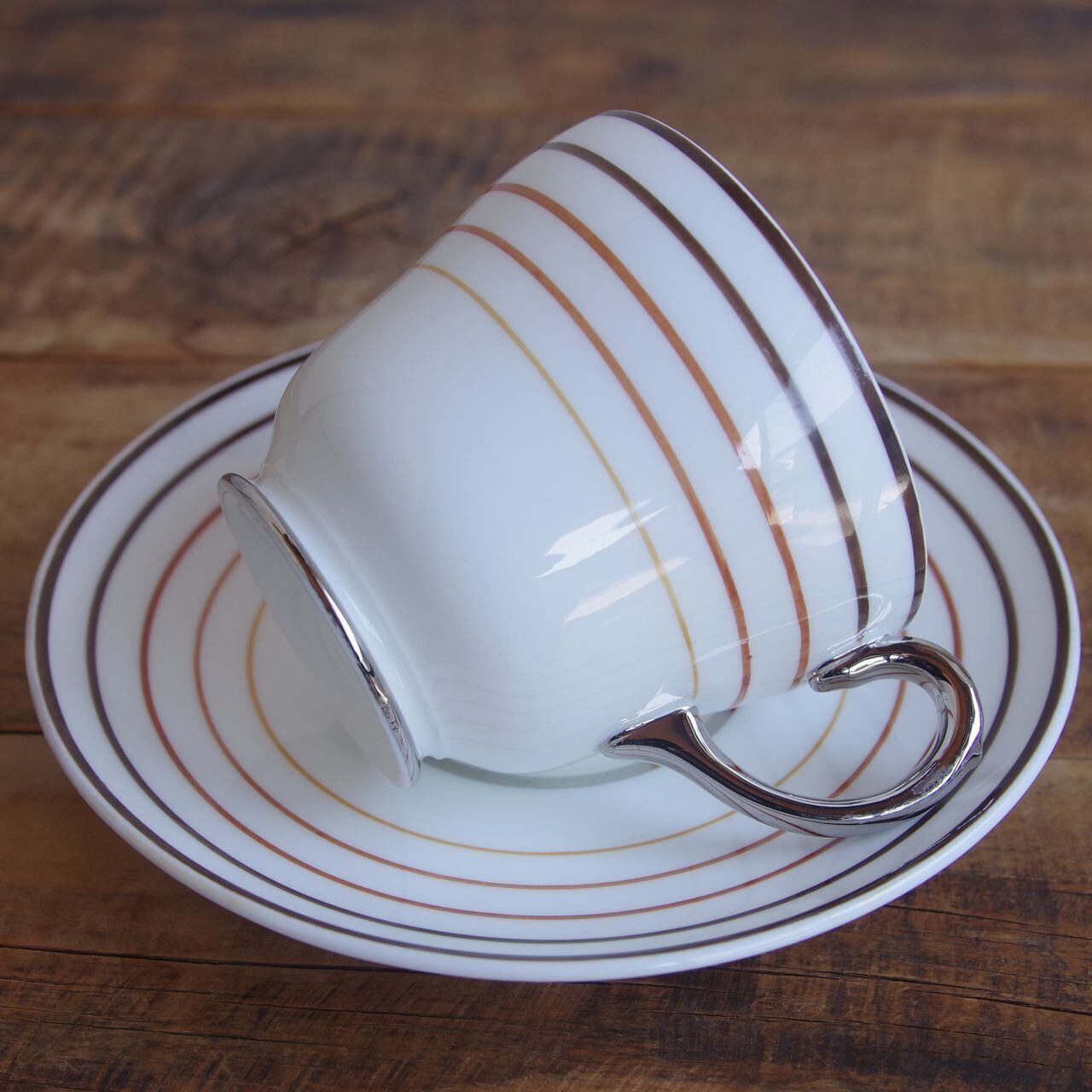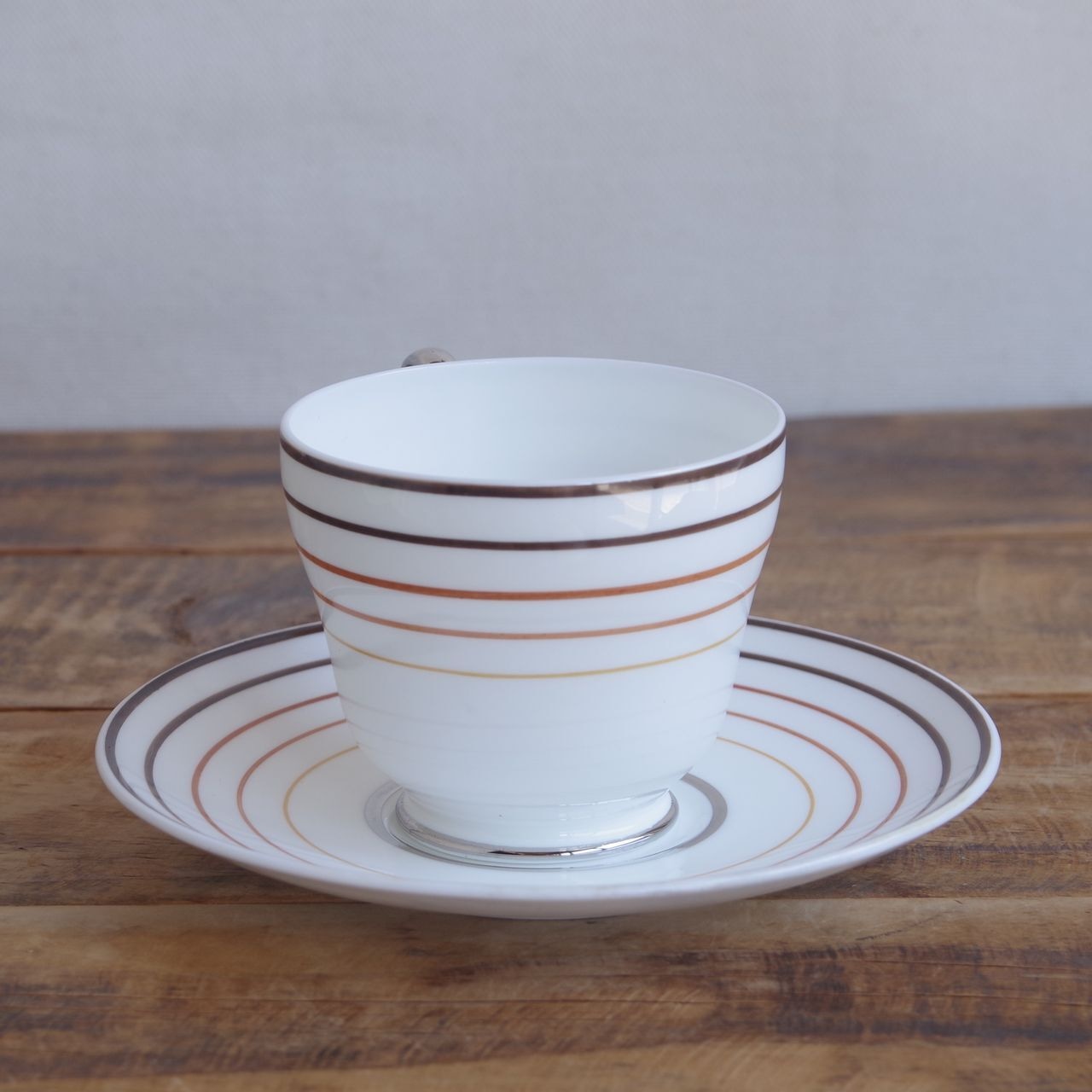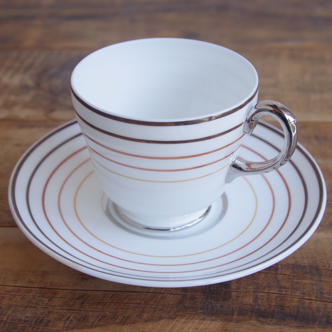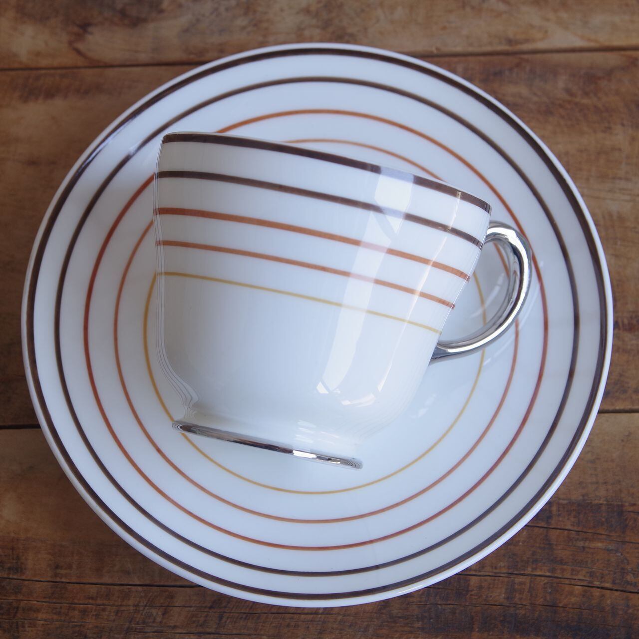 ウェッジウッド プラチナ ブラウン ボーダー グラデーション コーヒーカップ&ソーサー Wedgwood ヴィンテージ 食器 #250802-3 アンティーク 陶磁器 レトロ シルバー イエロー 赤 ティーカップ シンプルモダン