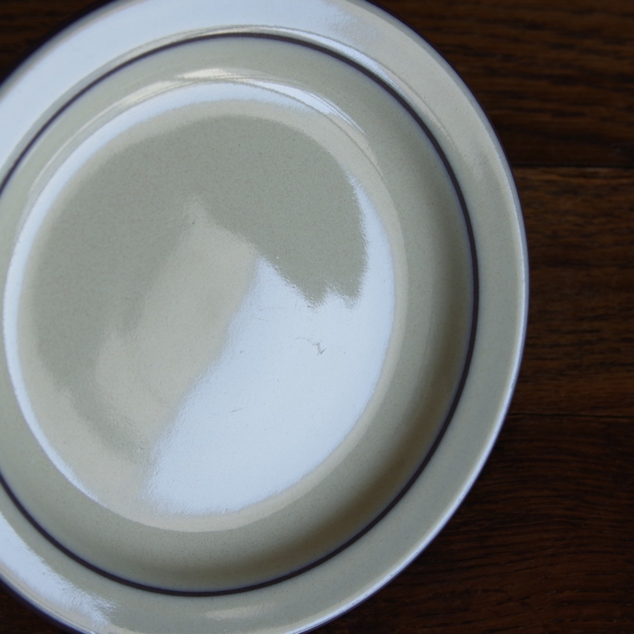 プレートはシンプルで、ダークブラウンのラインのみのデザインです。