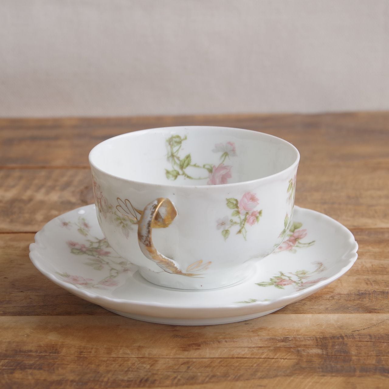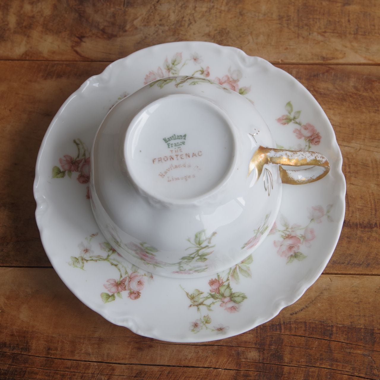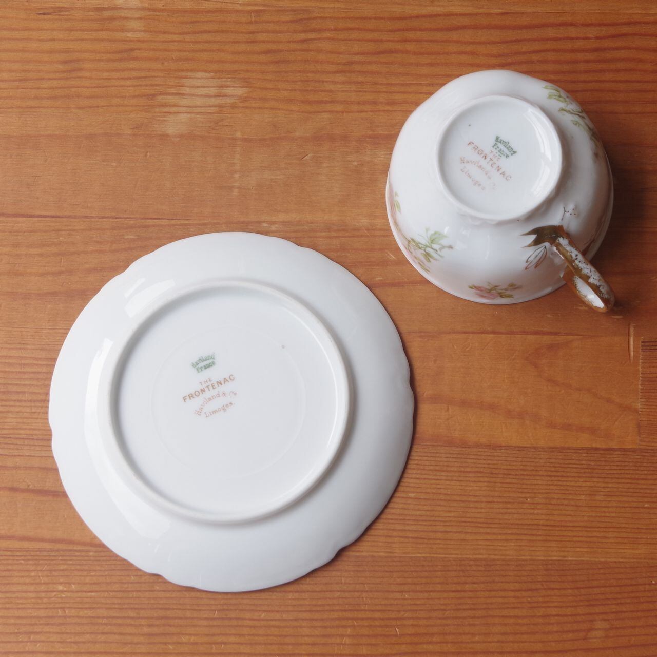 リモージュ アビランド フロンテナック 薔薇 花柄 ティーカップ ソーサー #250813-4 フランス アンティーク 食器 Haviland & Co. Limoges FRONTENAC カップ&ソーサー デュオ コーヒーカップ