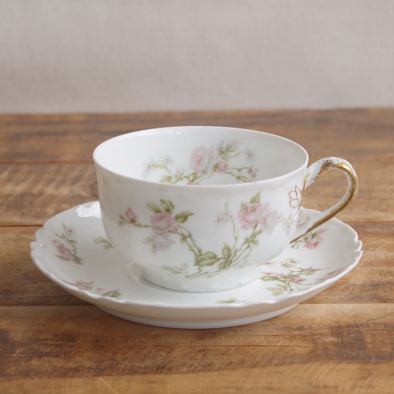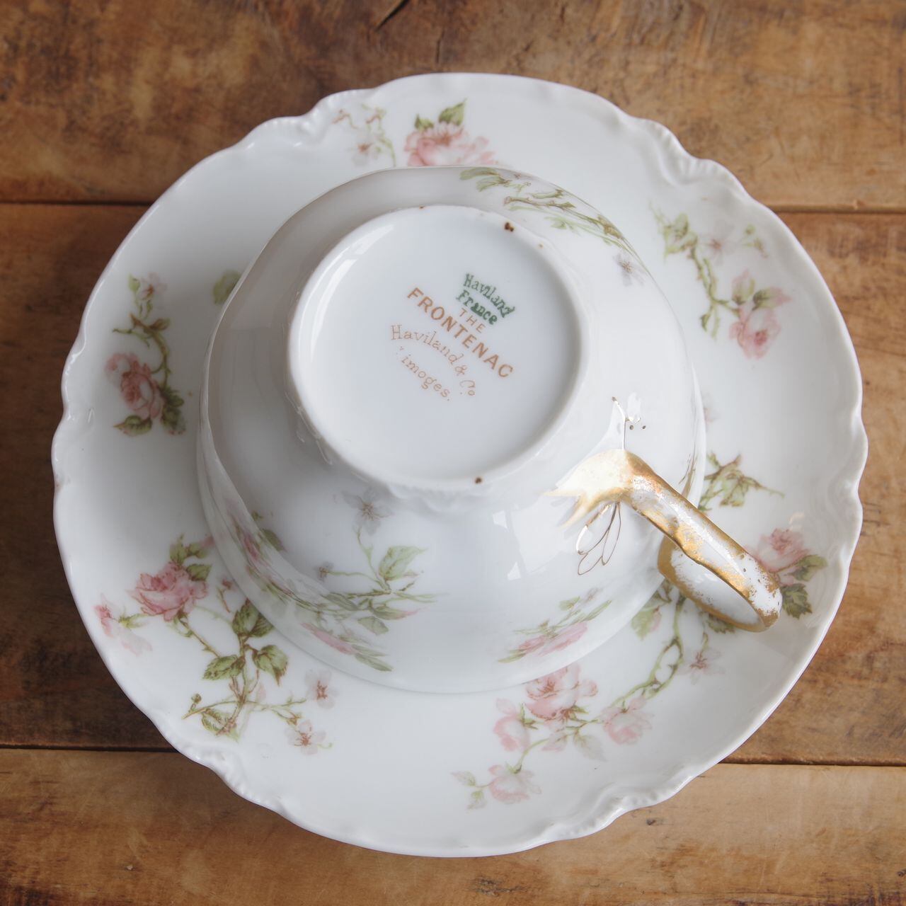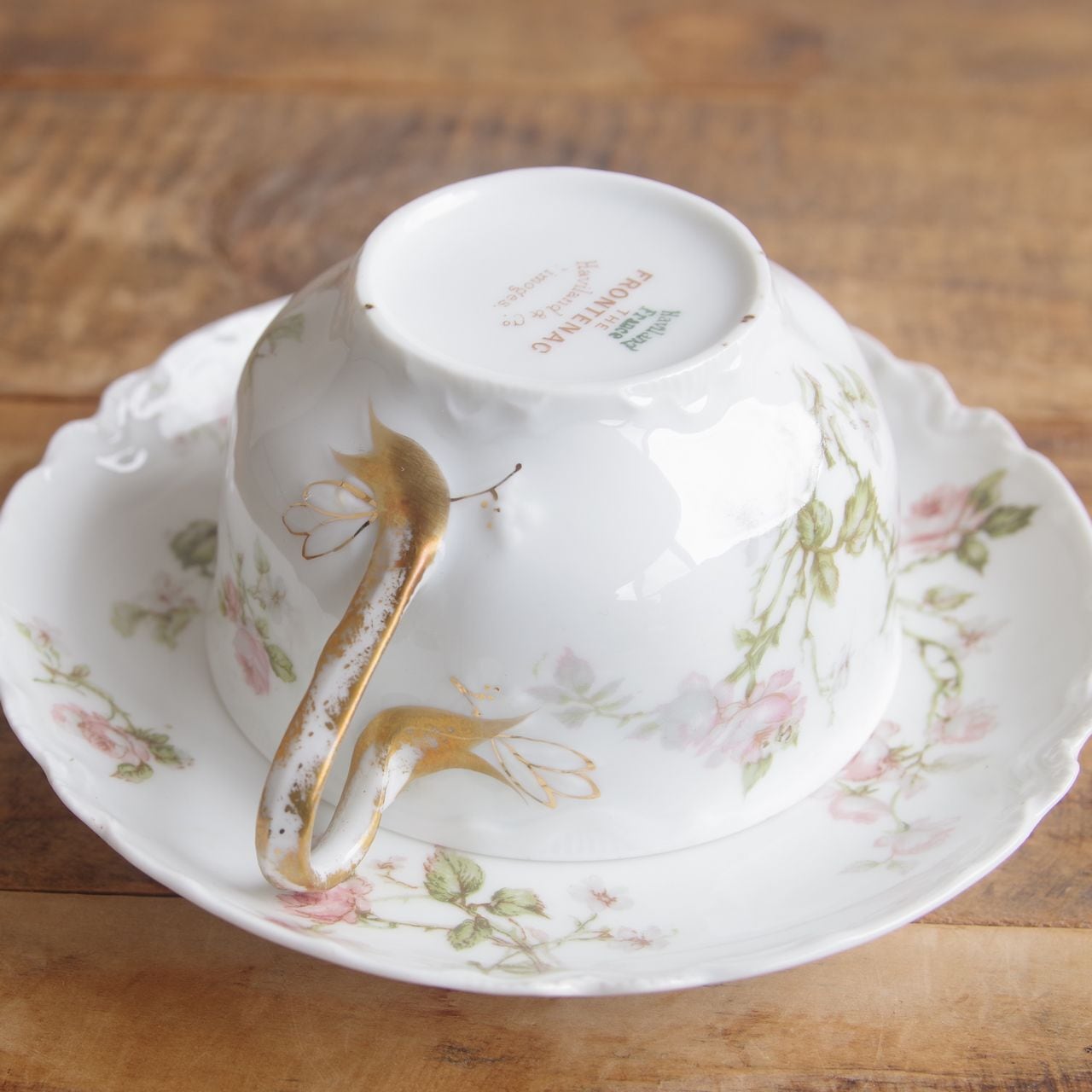 リモージュ アビランド フロンテナック 薔薇 花柄 ティーカップ ソーサー #250813-5 フランス アンティーク 食器 Haviland & Co. Limoges FRONTENAC カップ&ソーサー デュオ コーヒーカップ