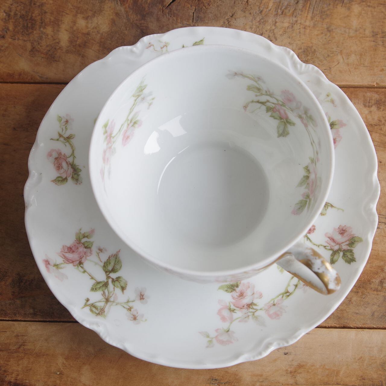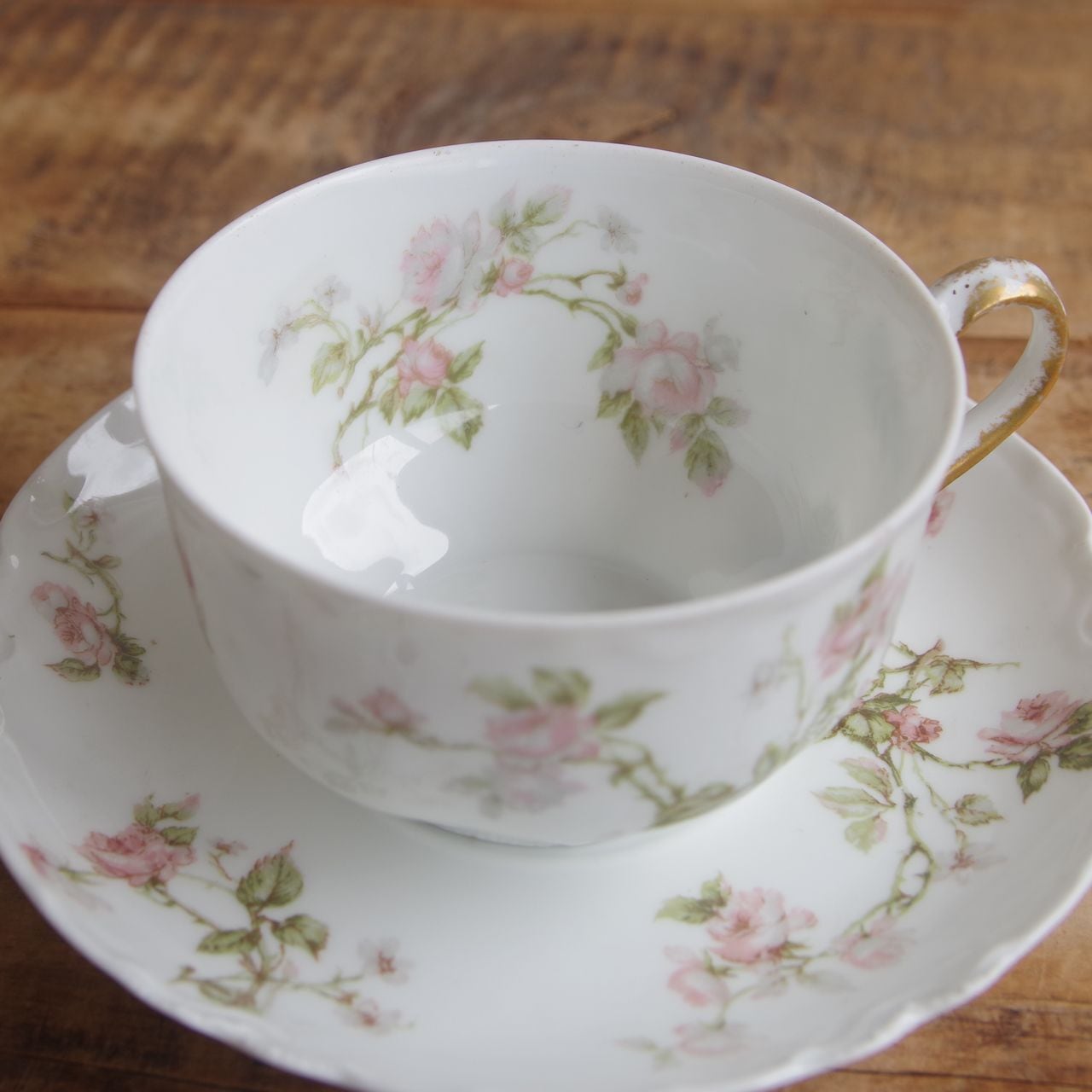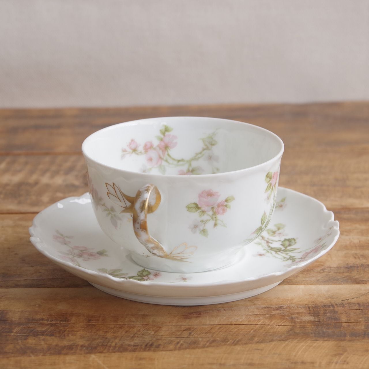 リモージュ アビランド フロンテナック 薔薇 花柄 ティーカップ ソーサー #250813-5 フランス アンティーク 食器 Haviland & Co. Limoges FRONTENAC カップ&ソーサー デュオ コーヒーカップ