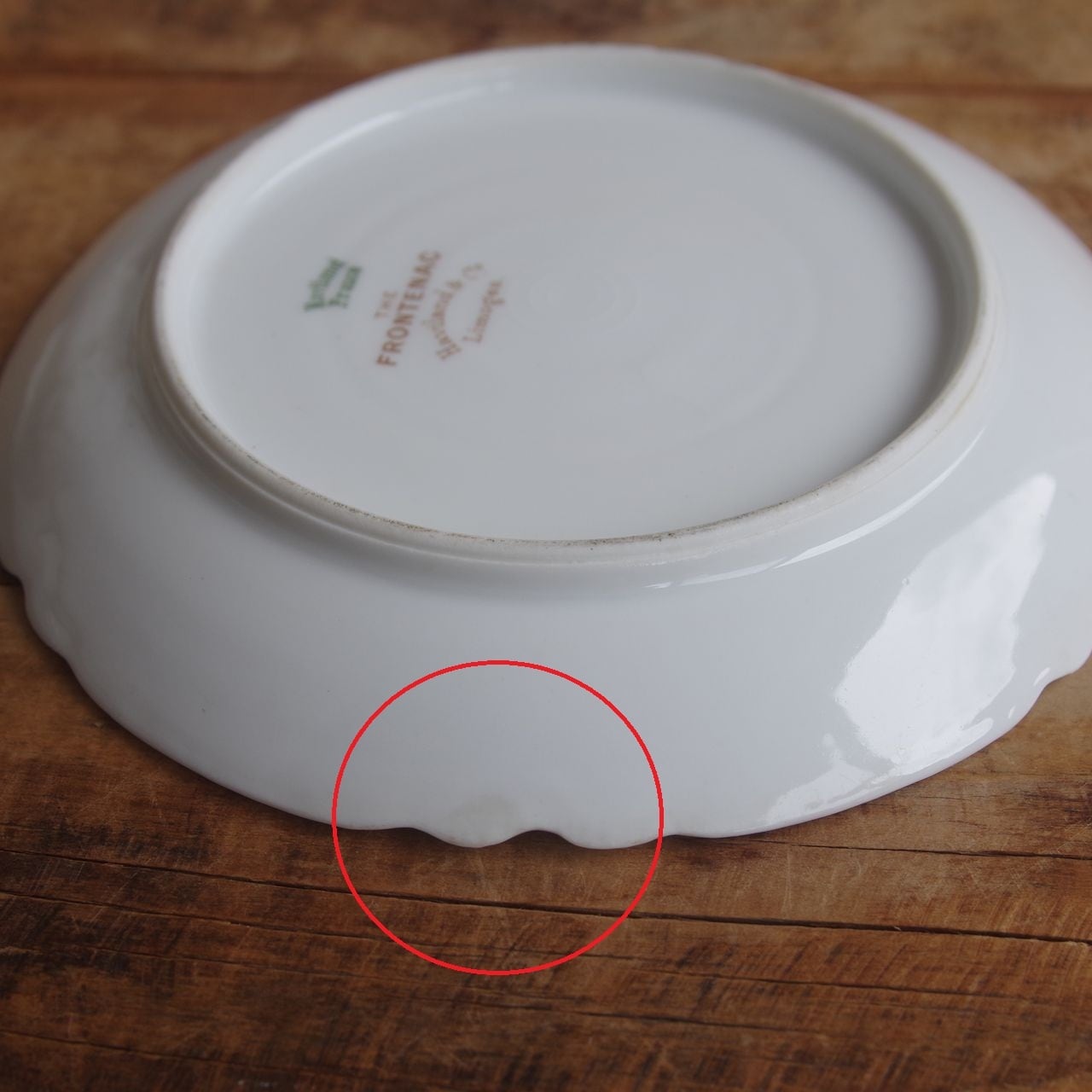 ソーサーの裏側のふちに、うっすらと茶色っぽくシミになっている箇所があります。