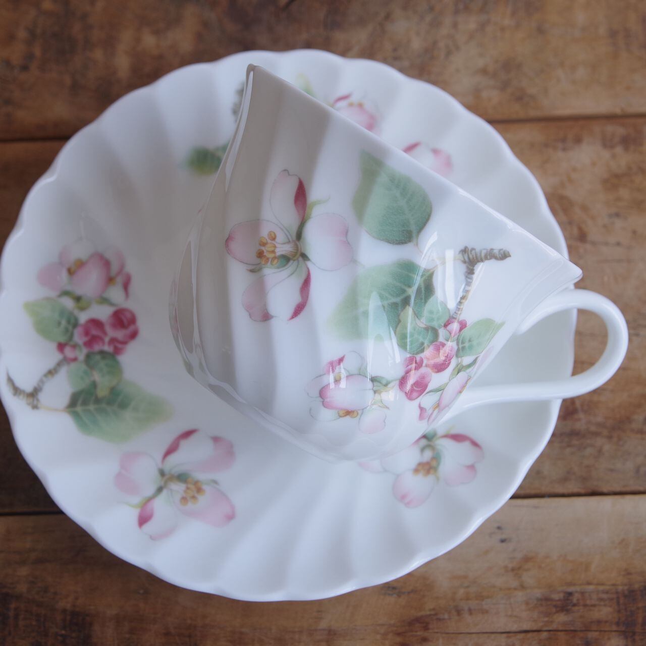 ウェッジウッド アップルブロッサム りんご 花柄 カップ&ソーサー Wedgwood Apple Blossom #250828-1~5 イギリス ヴィンテージ 食器 陶器 レトロ コーヒーカップ ティーカップ デュオ