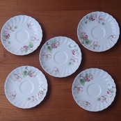 ドレープのようなレリーフが入っており、淡いピンク色のリンゴの花が描かれています。