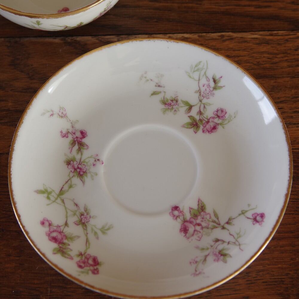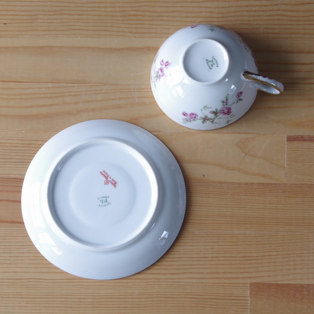 フランス製アンティーク食器 Limoges PL リモージュ 薔薇 花柄 ティーカップ ソーサー #181129 La porcelaine limousine 陶器 レトロ 金彩