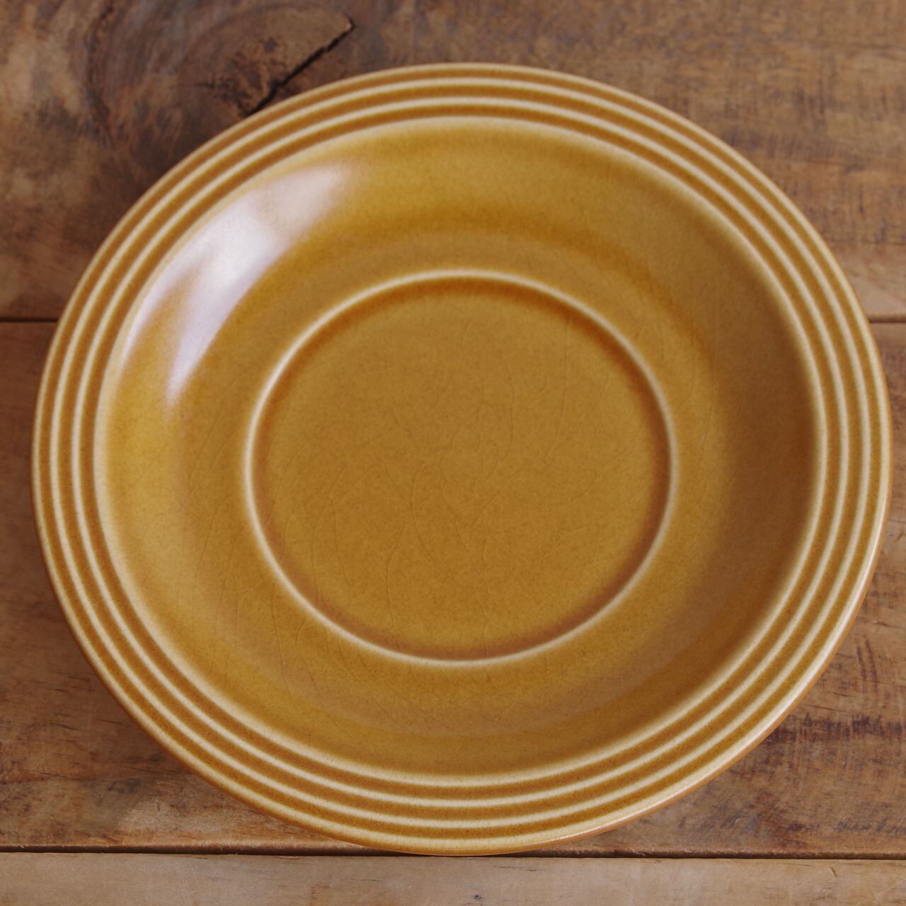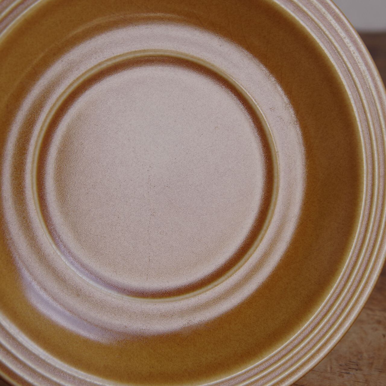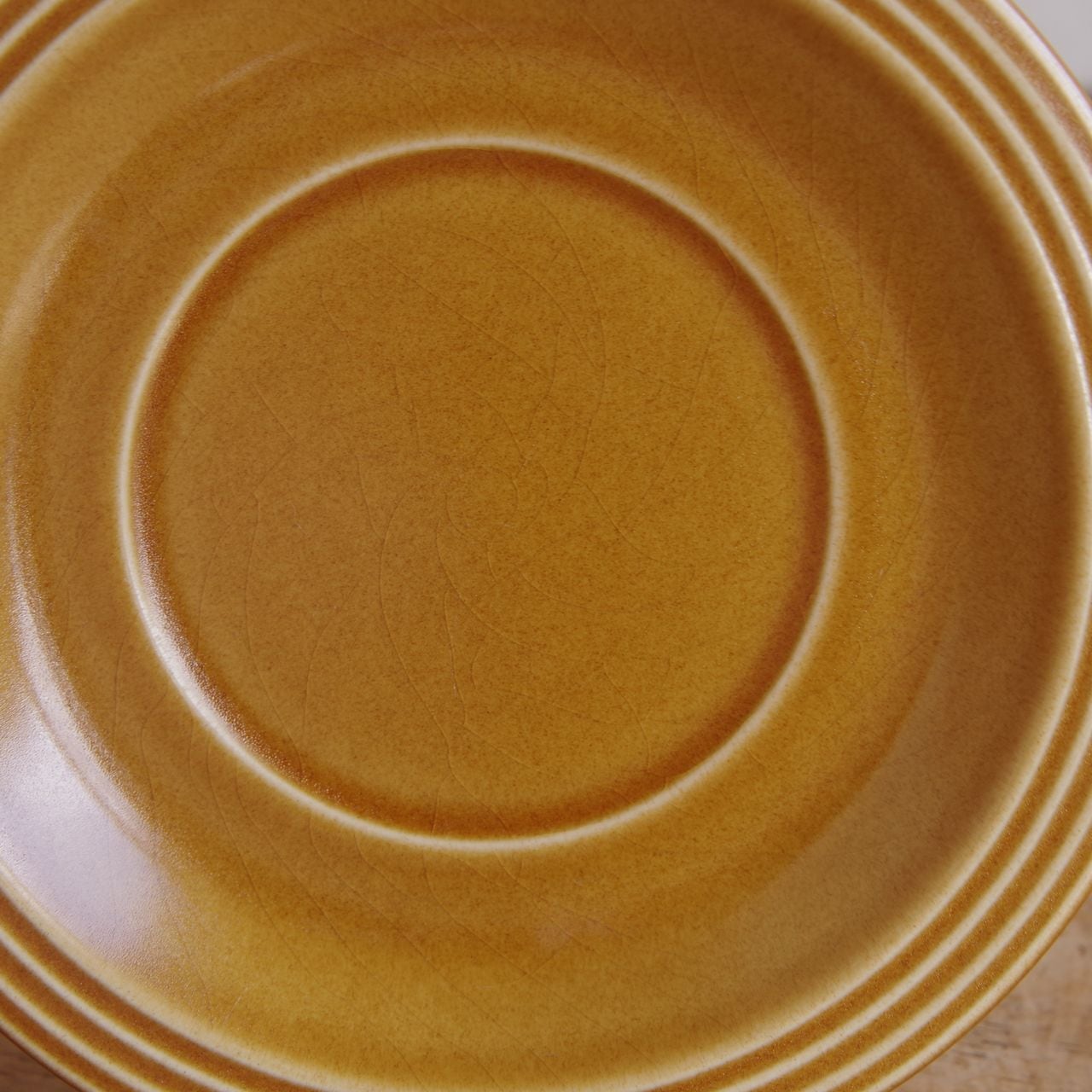 ソーサーはキャラメル色の単色で、リム部分に溝状のレリーフのみが入っています。