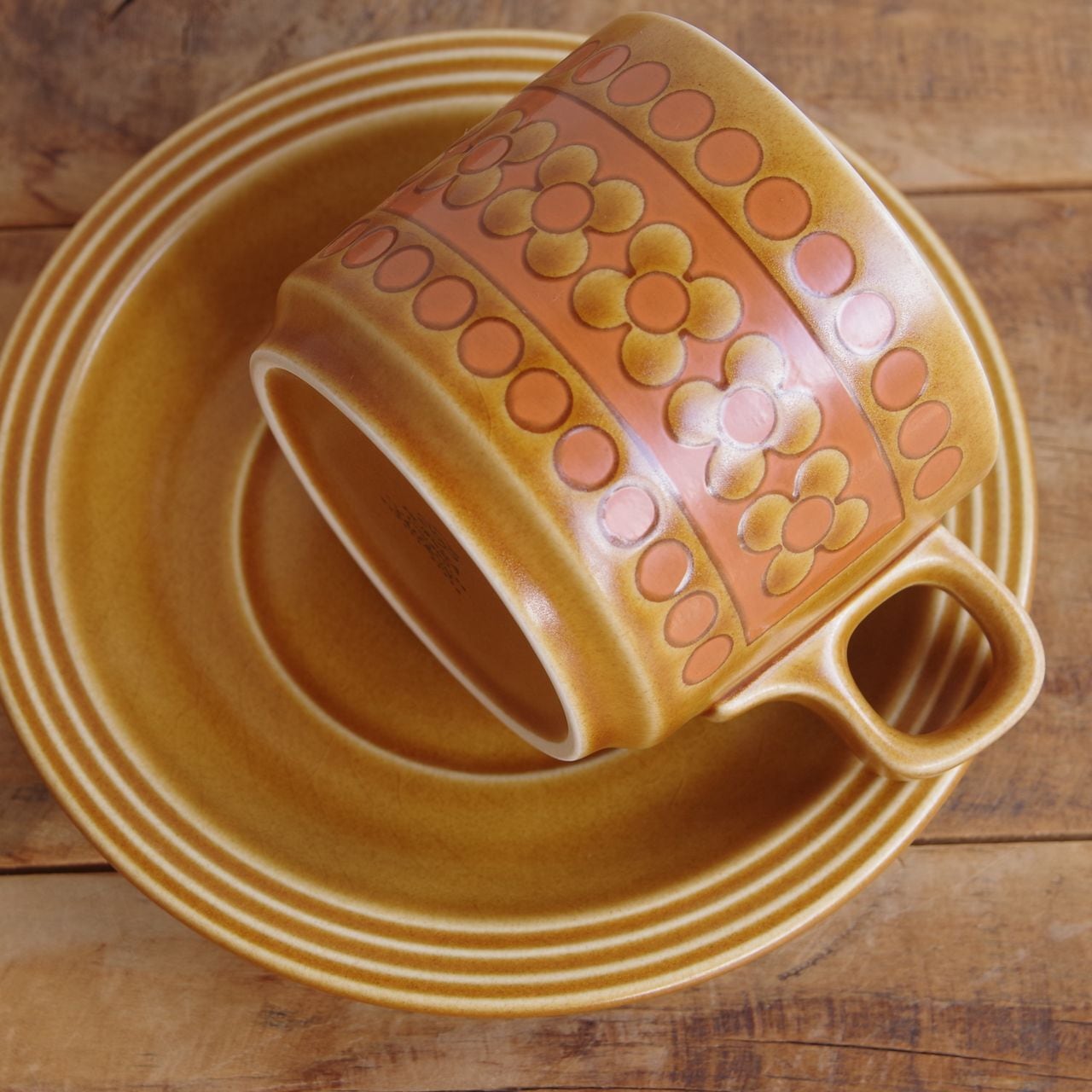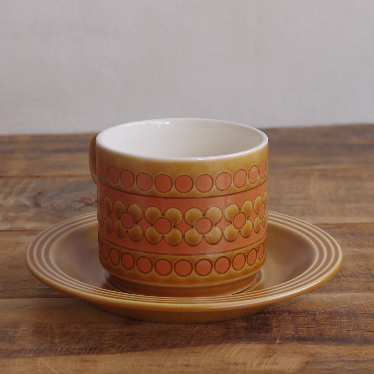 ホーンジー サフロン サフラン コーヒーカップ ソーサー HORNSEA Saffron ブラウン キャラメル色 花柄 #250903-4 ヴィンテージ 食器 陶器 レトロモダン シンプル ティーカップ カップ&ソーサー