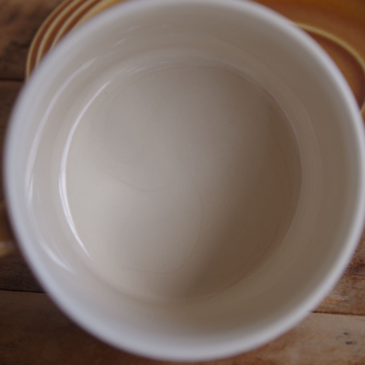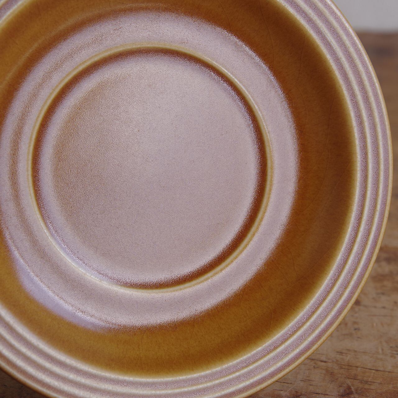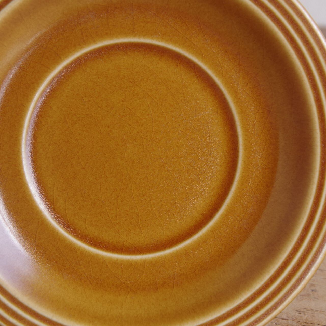 ソーサーはキャラメル色の単色で、リム部分に溝状のレリーフのみが入っています。