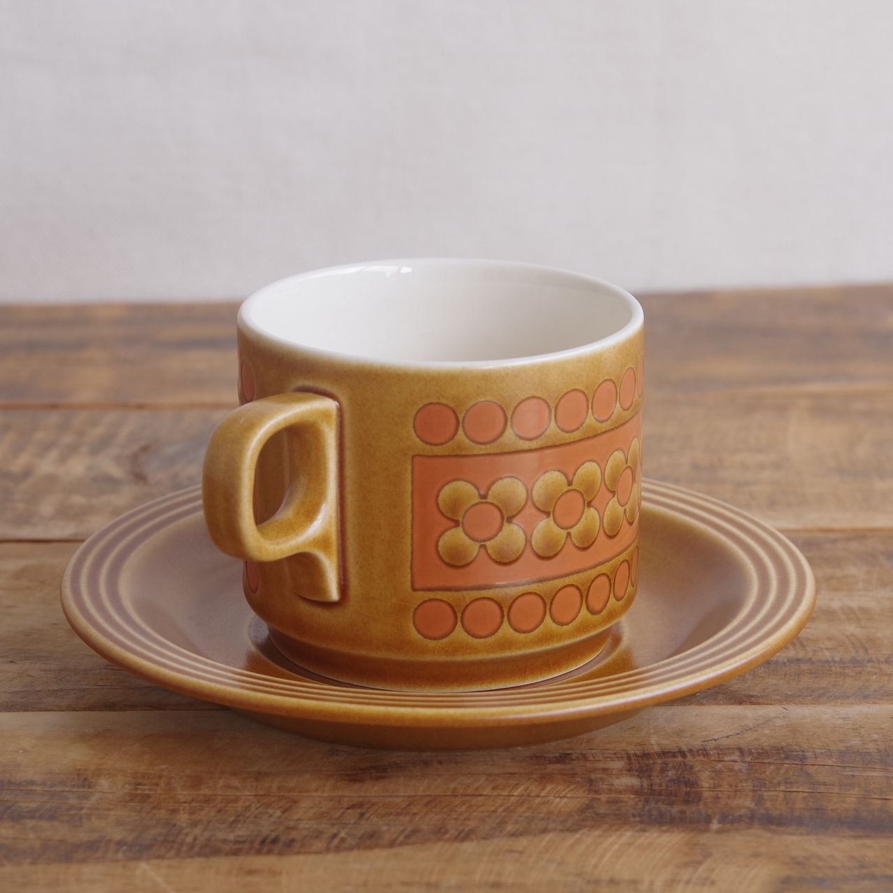 ホーンジー サフロン サフラン コーヒーカップ ソーサー HORNSEA Saffron ブラウン キャラメル色 花柄 #250903-5 ヴィンテージ 食器 陶器 レトロモダン シンプル ティーカップ カップ&ソーサー