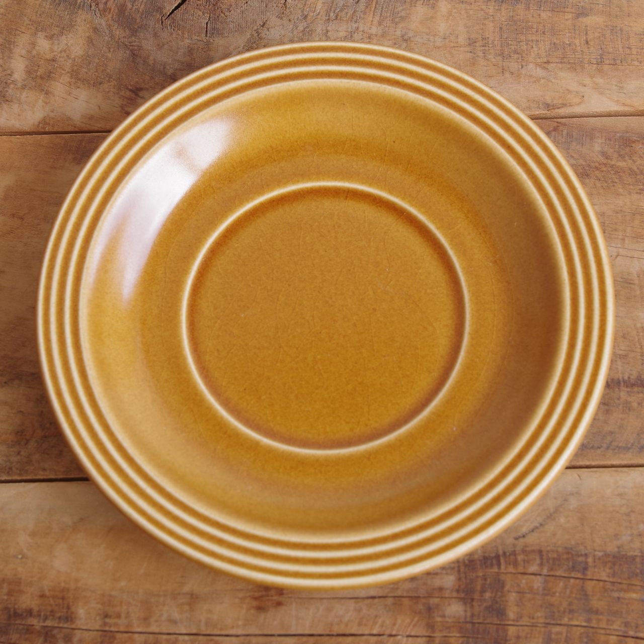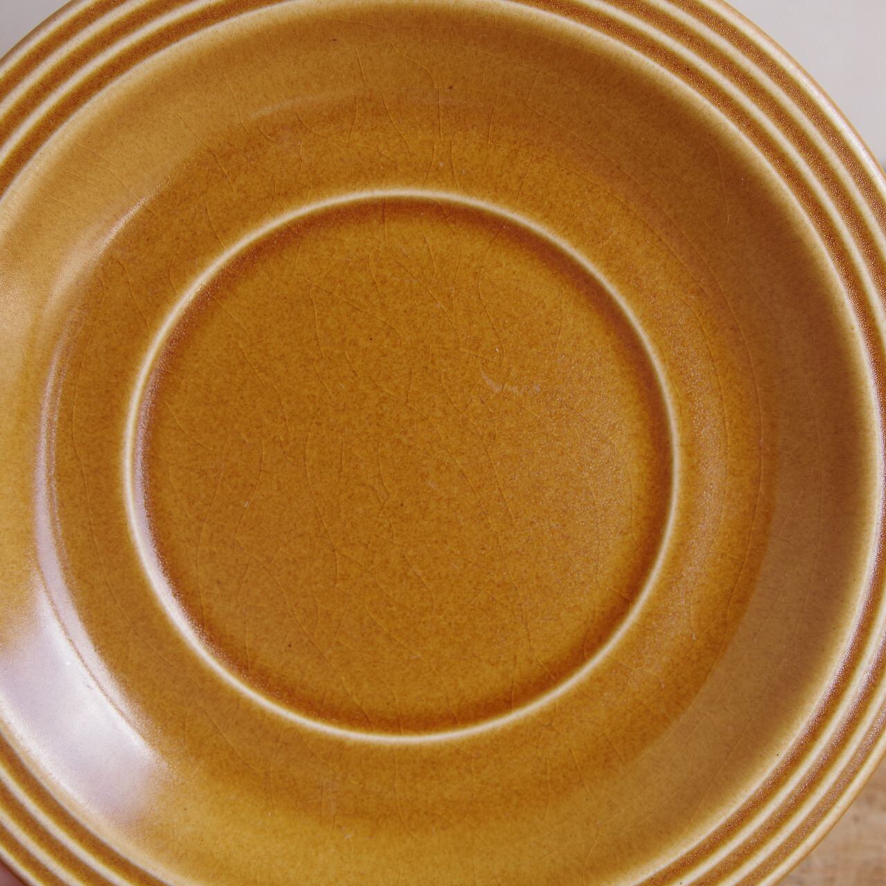 ソーサーはキャラメル色の単色で、リム部分に溝状のレリーフのみが入っています。
