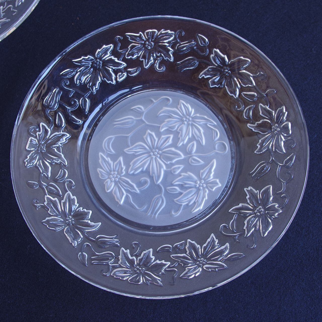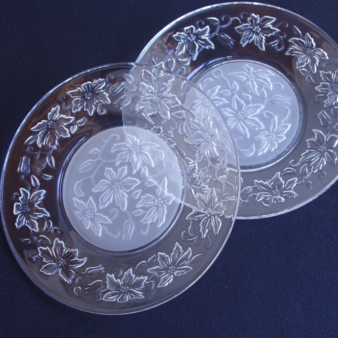 2枚セット プリンセスハウス ファンタジア 百合 レリーフ デザートプレート 20cm ケーキ皿 クリスタルガラス #250903 Princess House Fantasia フロストガラス エンボス