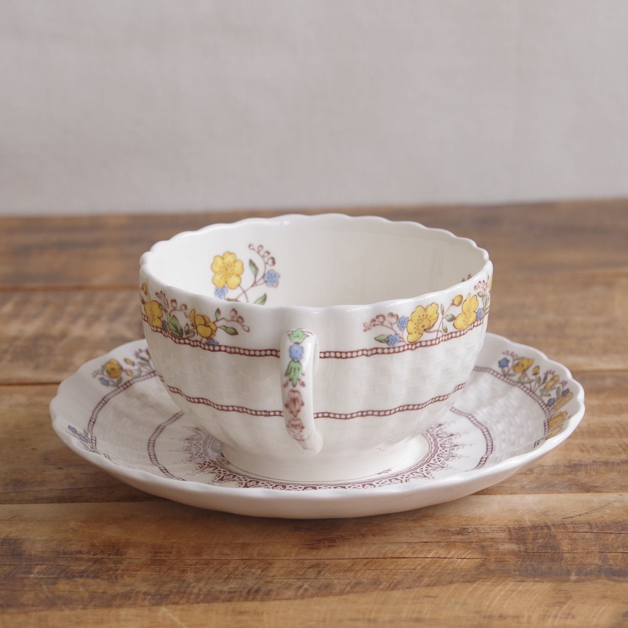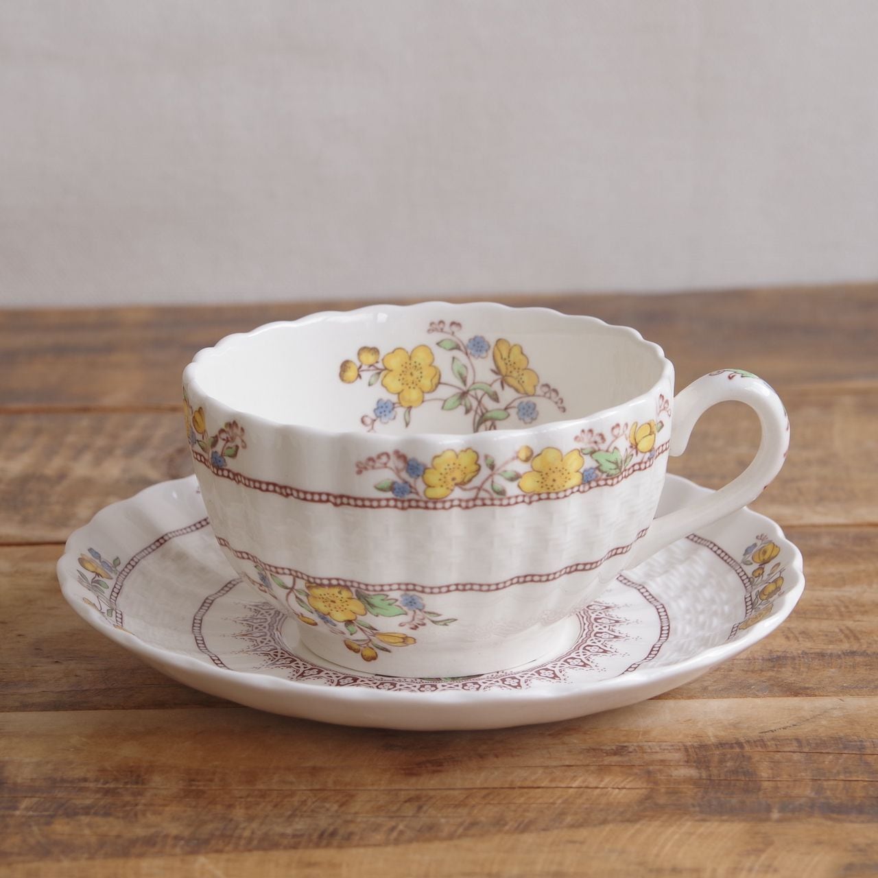 スポード バターカップ ティーカップ ソーサー Spode Buttercup きんぽうげ 花柄 #250904-7 ヴィンテージ食器 アンティーク 陶器 ウィッカー レリーフ Copeland カップ&ソーサー レトロ かわいい