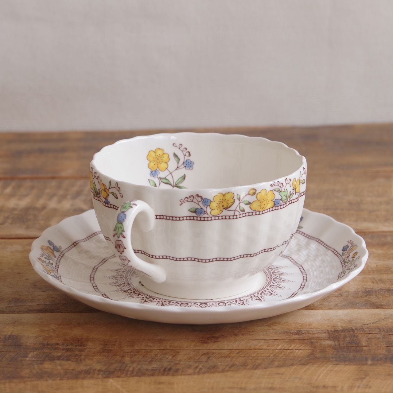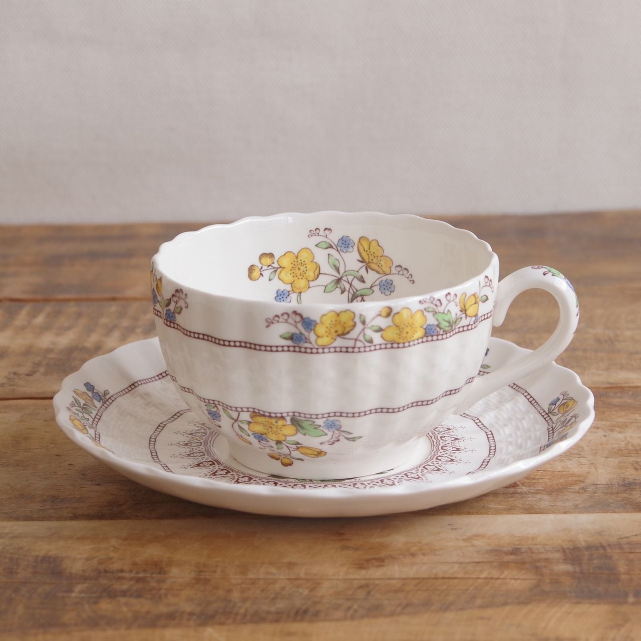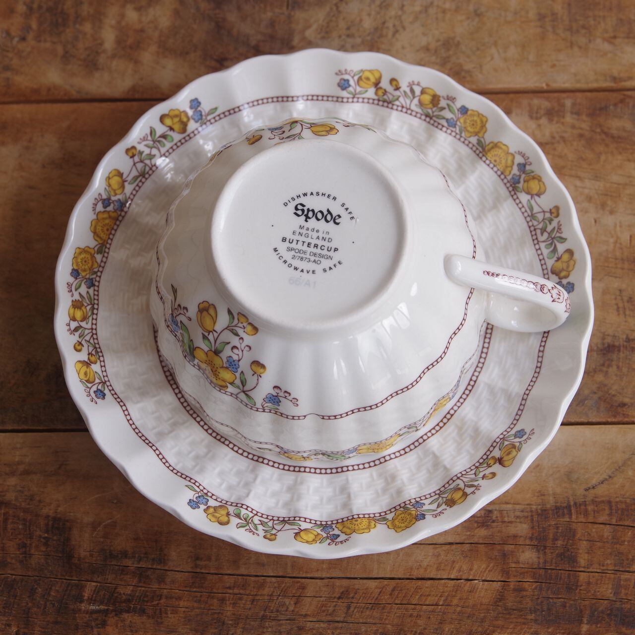 スポード バターカップ ティーカップ ソーサー Spode Buttercup きんぽうげ 花柄 #250904-8 ヴィンテージ食器 アンティーク 陶器 ウィッカー レリーフ Copeland カップ&ソーサー レトロ かわいい