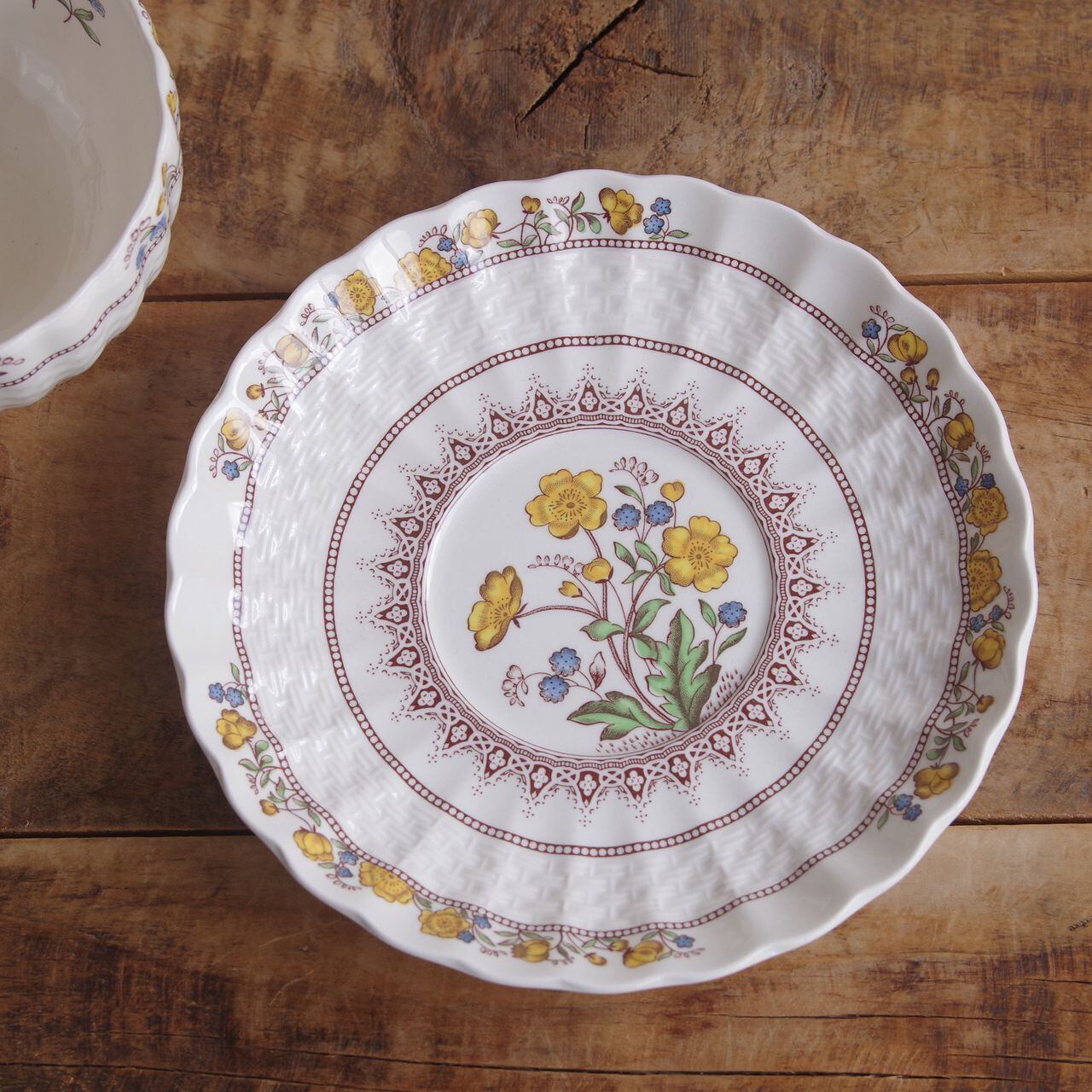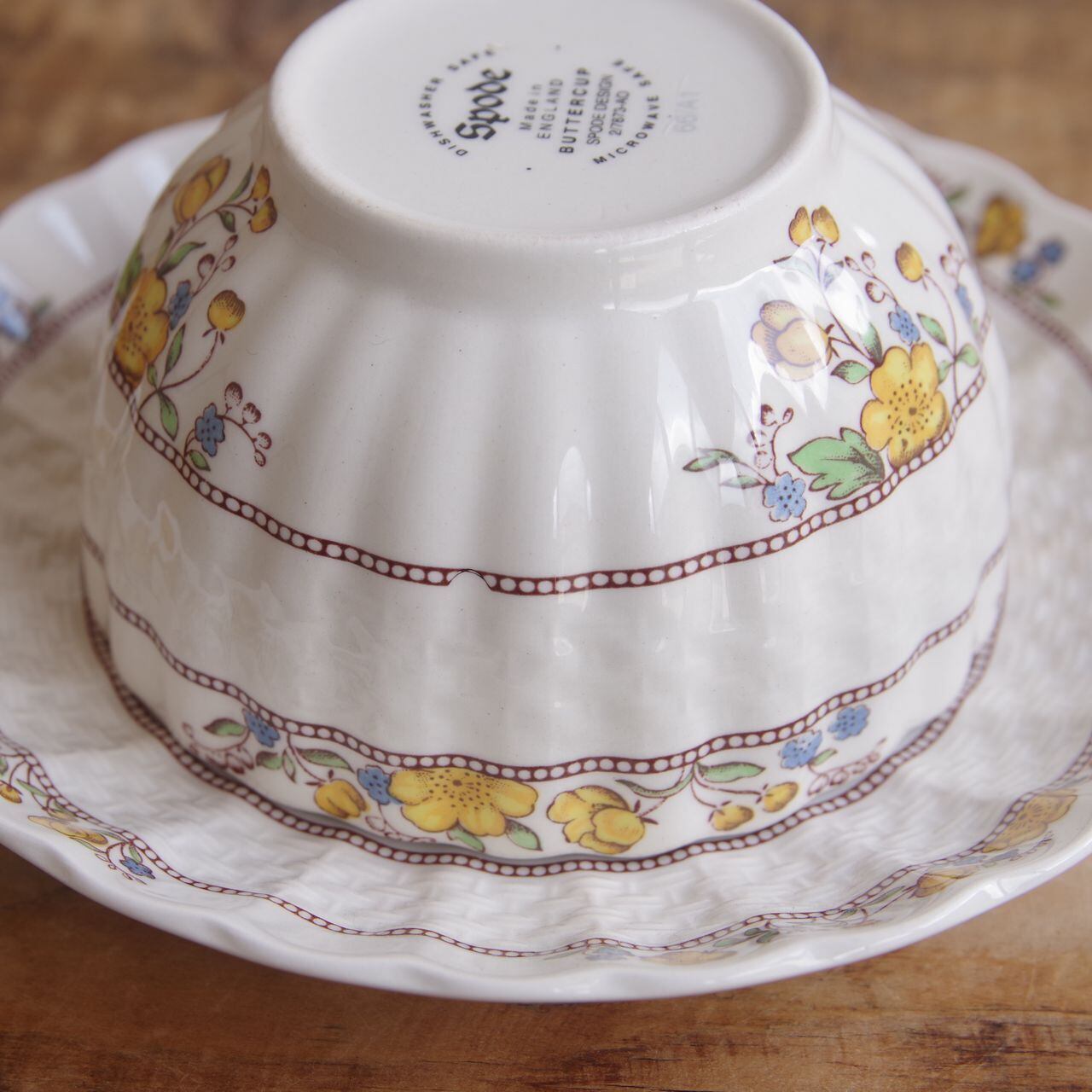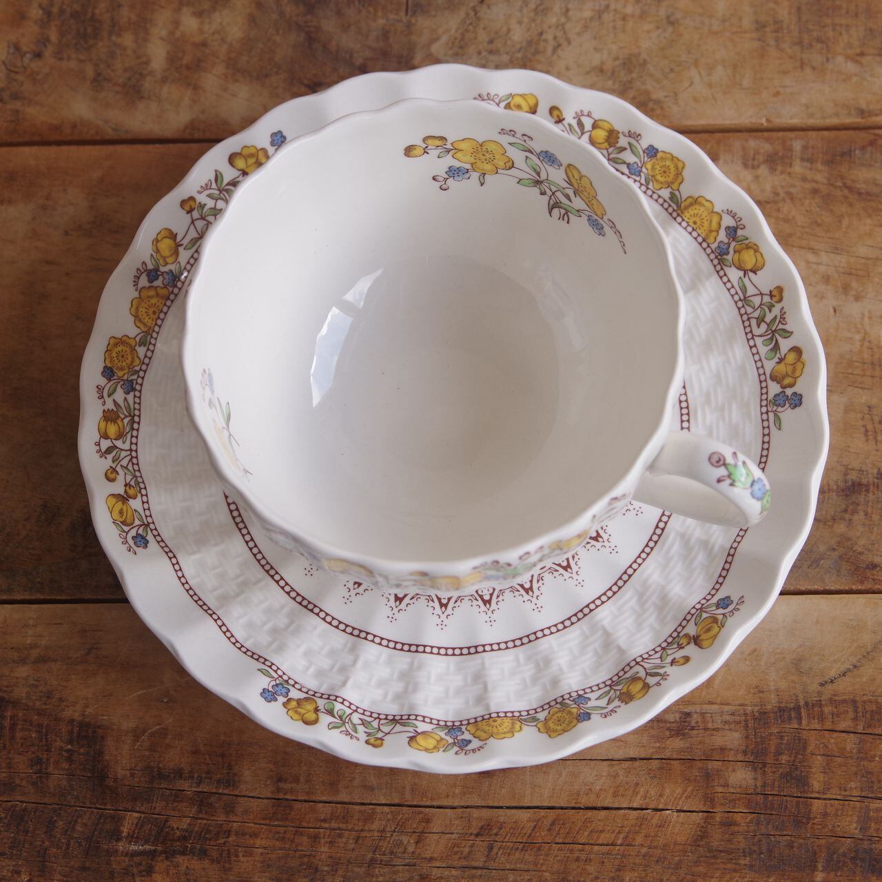 スポード バターカップ ティーカップ ソーサー Spode Buttercup きんぽうげ 花柄 #250904-8 ヴィンテージ食器 アンティーク 陶器 ウィッカー レリーフ Copeland カップ&ソーサー レトロ かわいい