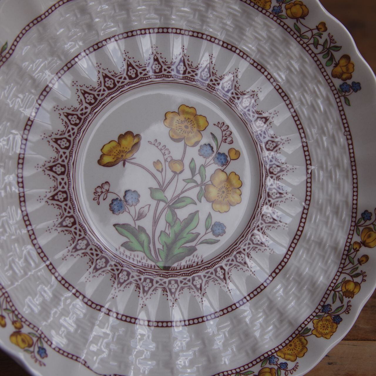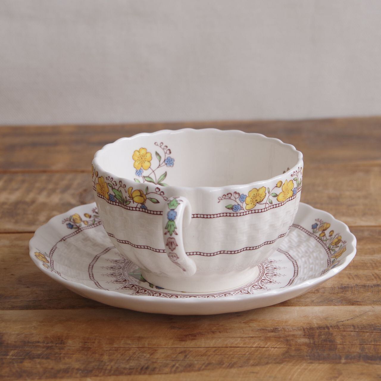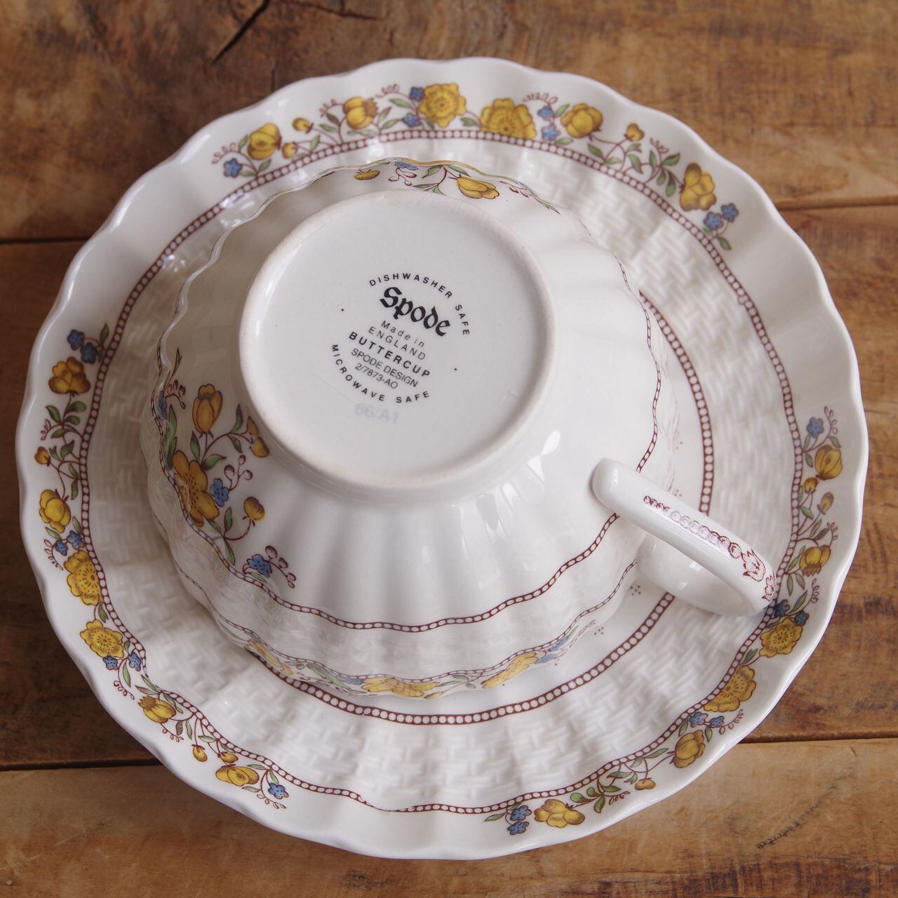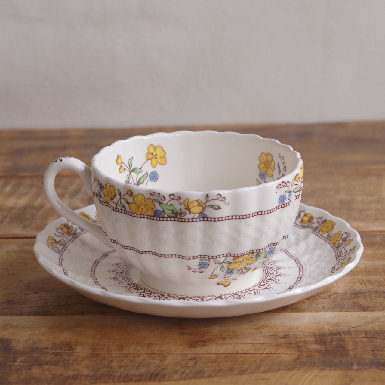 スポード バターカップ ティーカップ ソーサー Spode Buttercup きんぽうげ 花柄 #250904-9 ヴィンテージ食器 アンティーク 陶器 ウィッカー レリーフ Copeland カップ&ソーサー レトロ かわいい