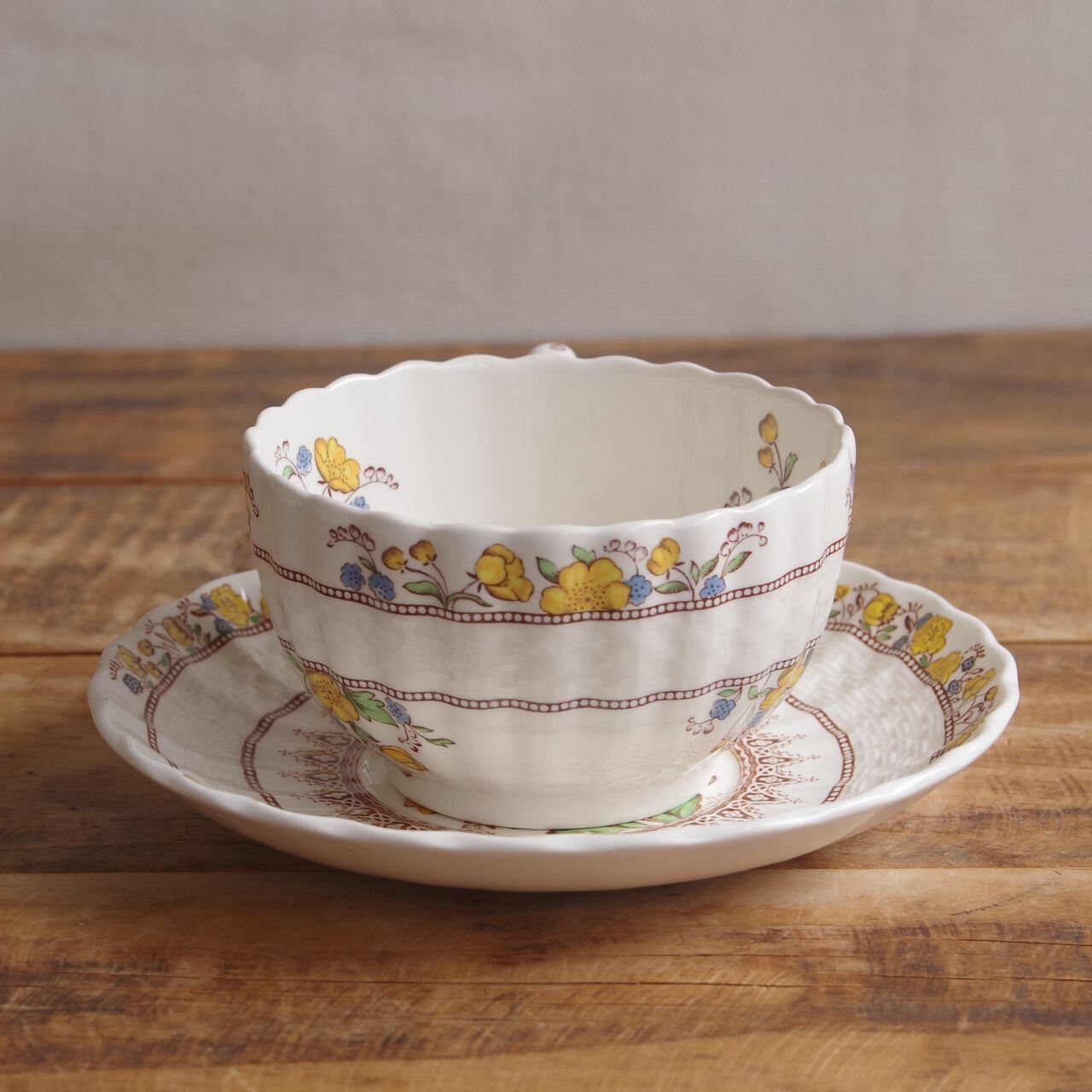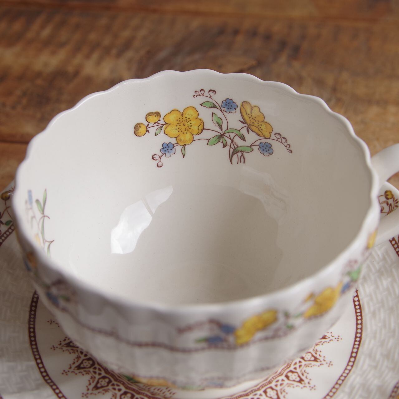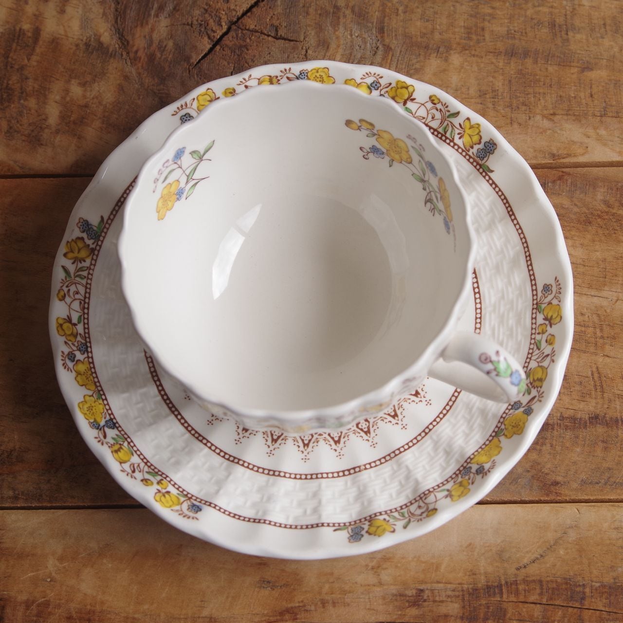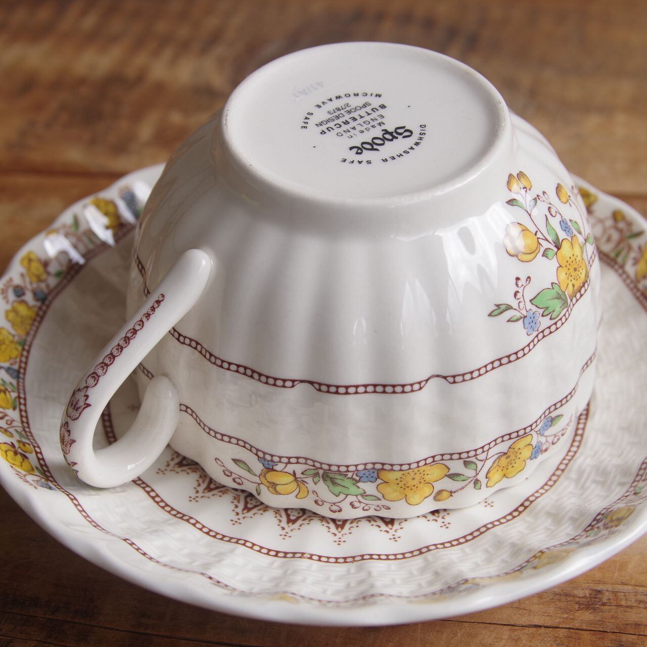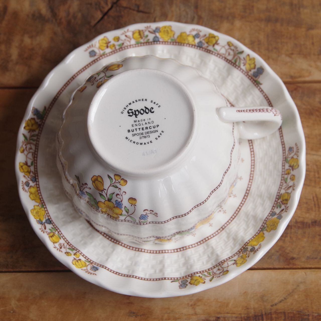 スポード バターカップ ティーカップ ソーサー Spode Buttercup きんぽうげ 花柄 #250904-11 ヴィンテージ食器 アンティーク 陶器 ウィッカー レリーフ Copeland カップ&ソーサー レトロ かわいい