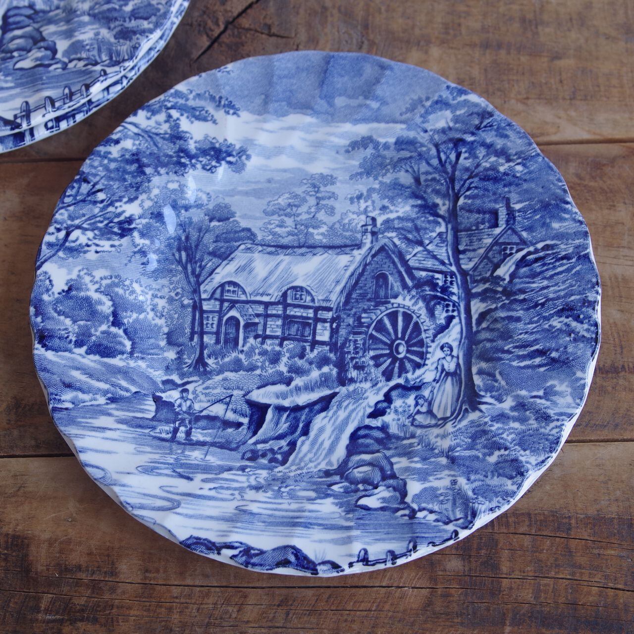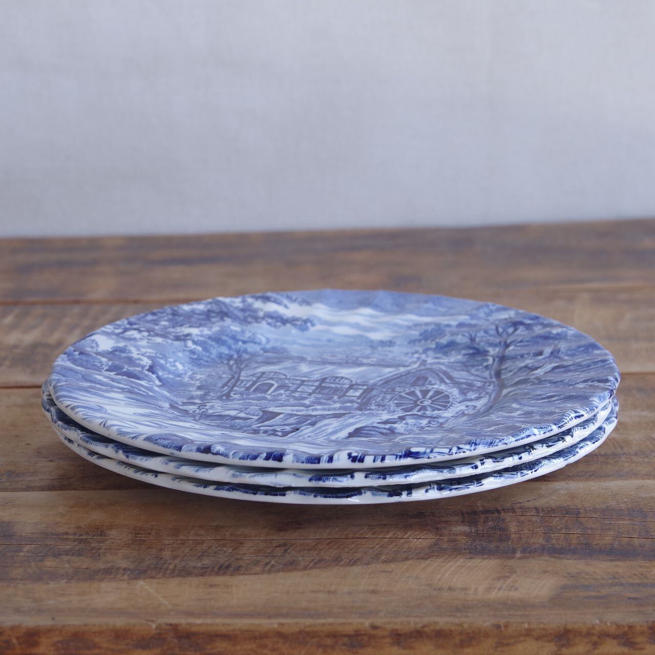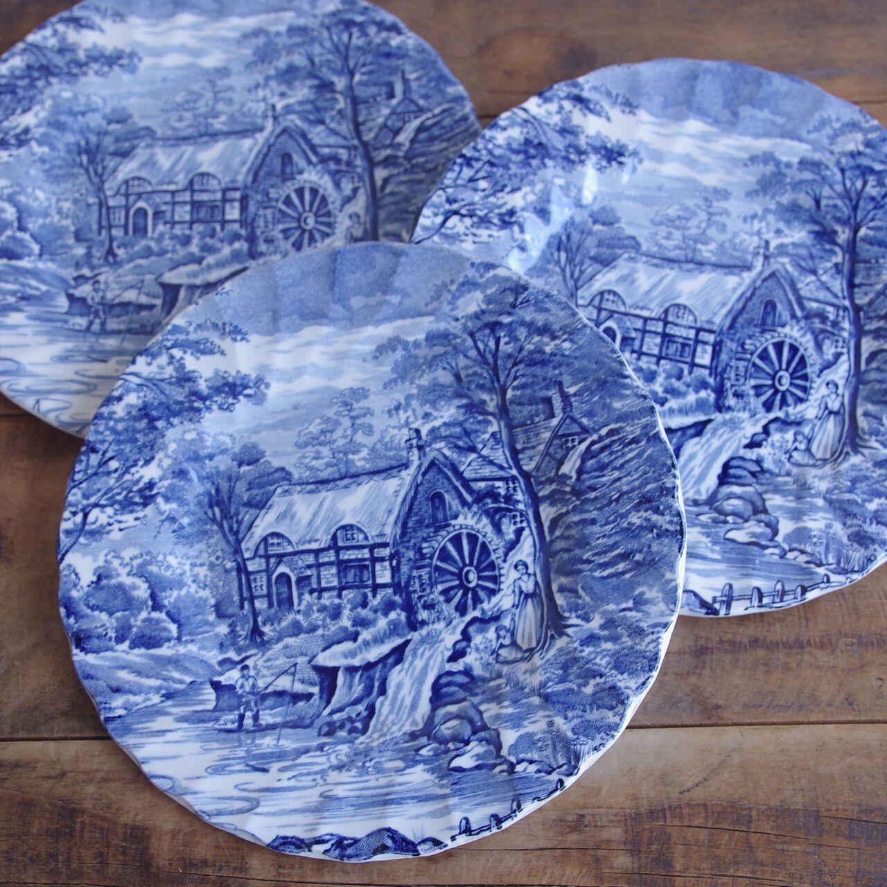 3枚セット アルフレッド・ミーキン ザ ミル ブルー デザートプレート ケーキ皿 17cm Alfred Meakin The Mill #250906 イギリス ヴィンテージ 食器 陶器 レトロ お皿 パン皿 水車小屋 風景 釣り 青 染付