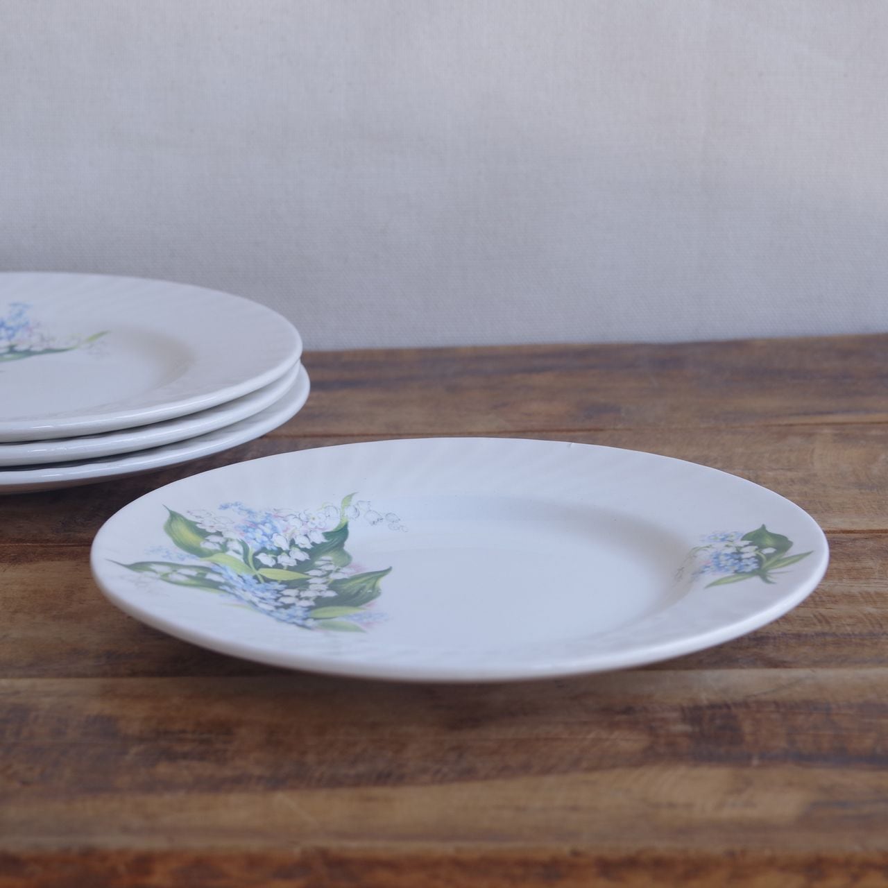 4枚セット バラッツ Barratts すずらん 忘れな草 花柄 デザートプレート ケーキ皿 18cm #250906 イギリス ヴィンテージ 食器 陶器 レトロ テーブルウェア お皿