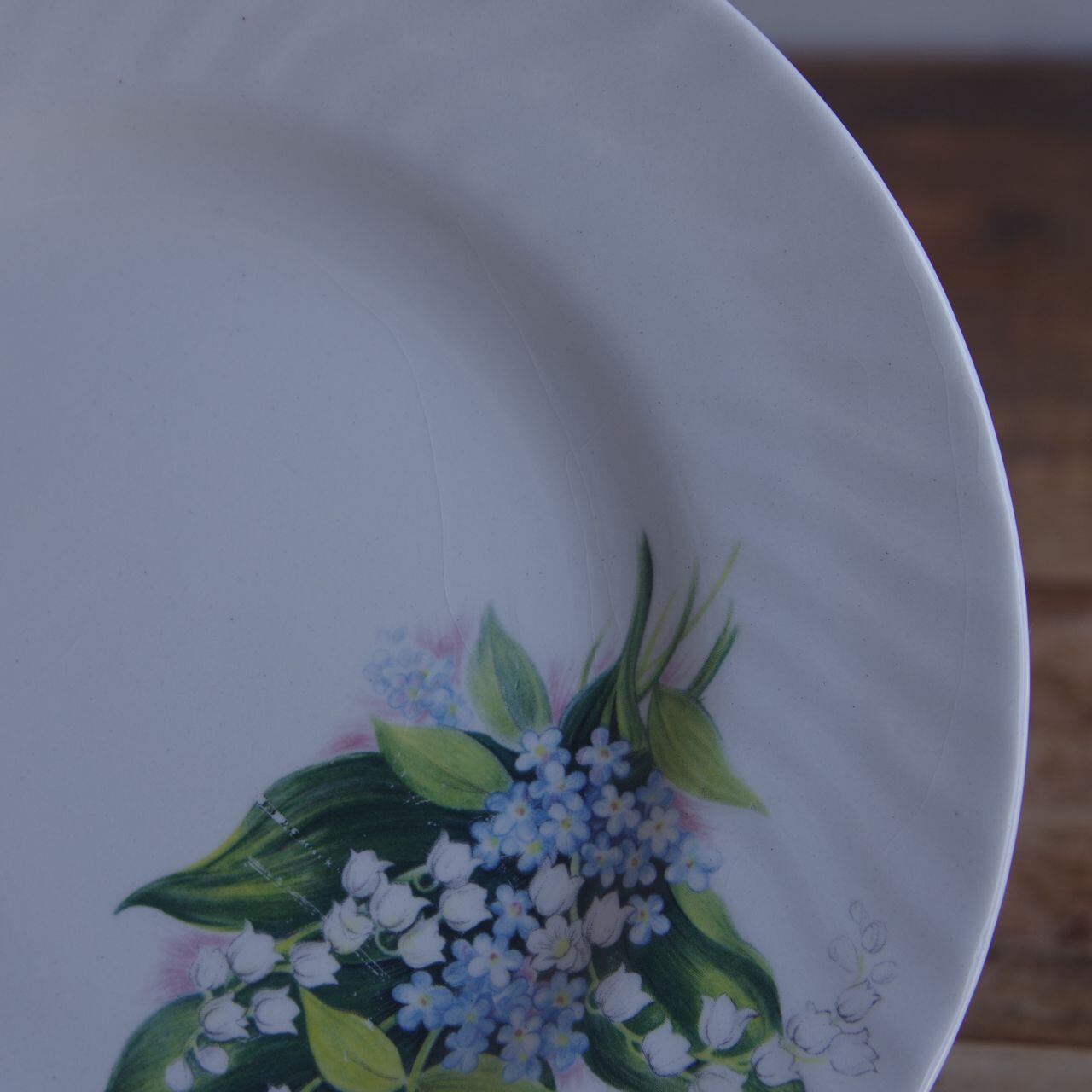 すずらんと勿忘草のブーケの絵柄が入った、レトロでかわいいデザインです。