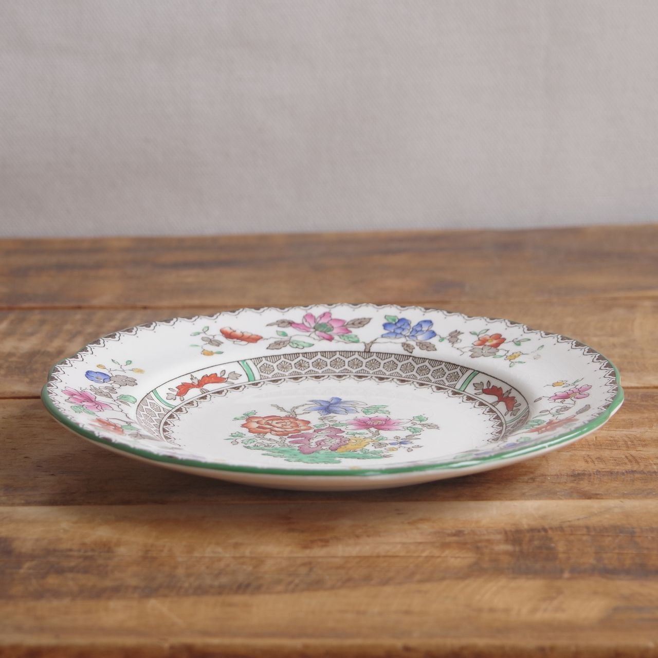 スポード チャイニーズローズ 花柄 デザートプレート ケーキ皿 16cm イギリス アンティーク 食器 陶器 #250909-6 SPODE Chinese Rose ヴィンテージ レトロ オリエンタル お皿 グリーン
