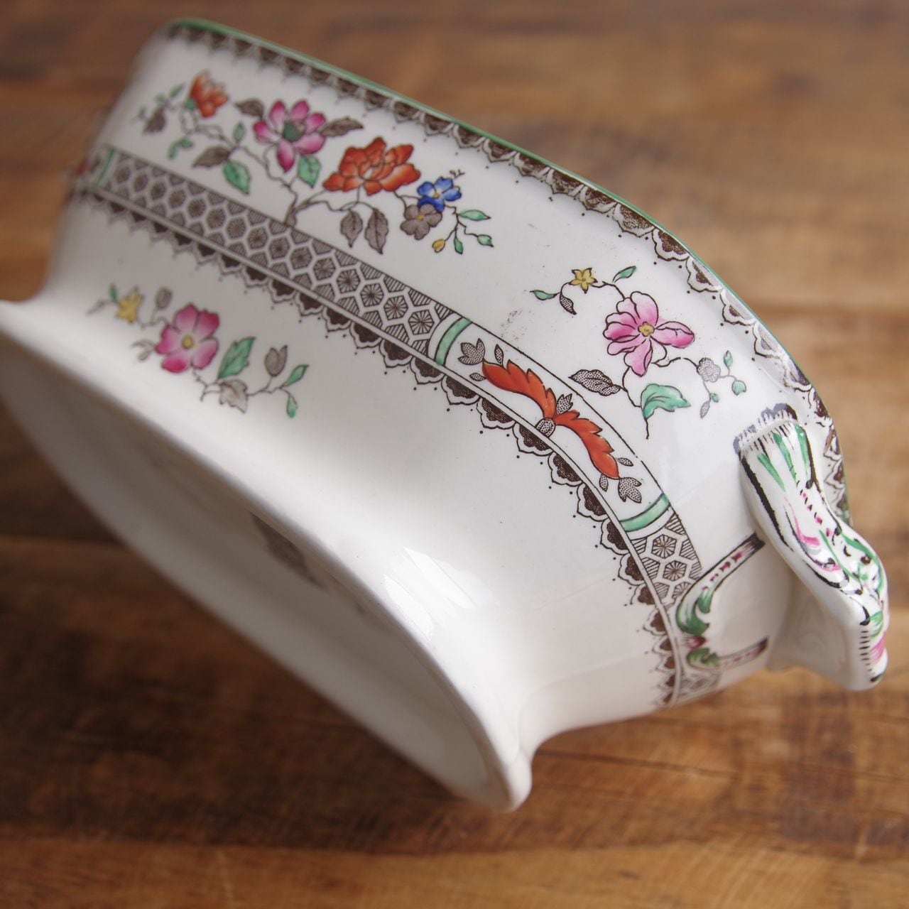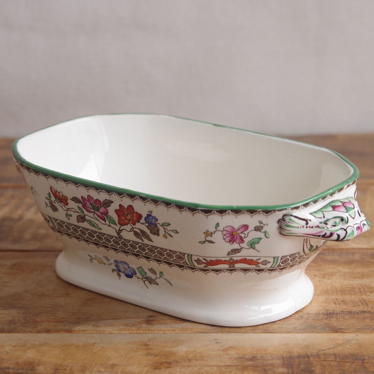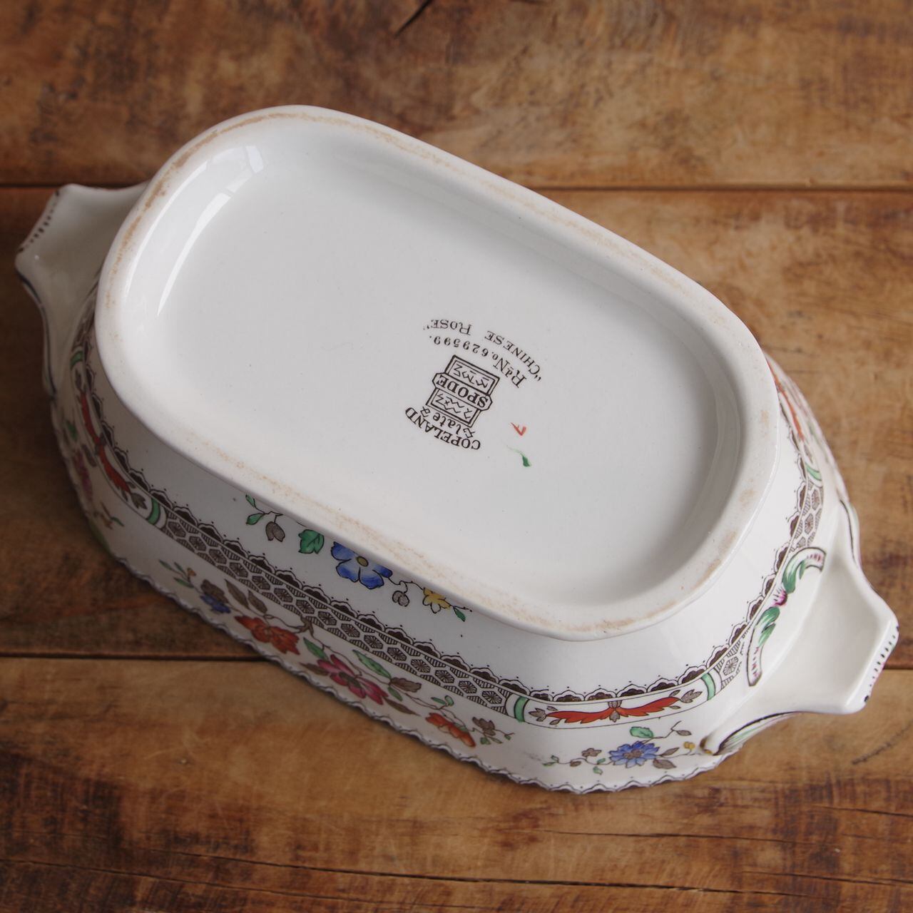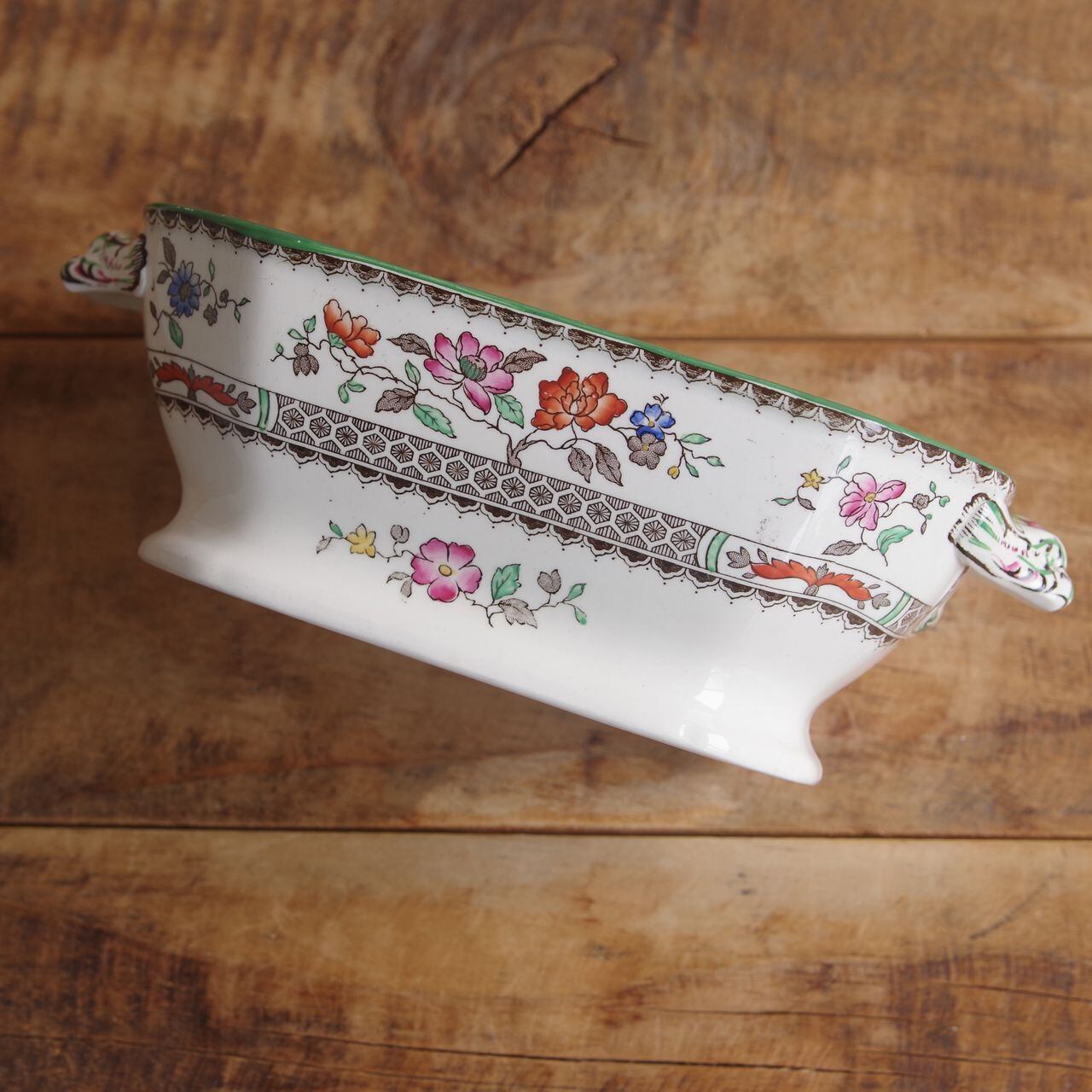 スポード チャイニーズローズ 花柄 ボウル 19cm イギリス アンティーク 食器 陶器 #250909 SPODE Chinese Rose ヴィンテージ レトロ オリエンタル グリーン 四角 長方形 鉢 持ち手付き