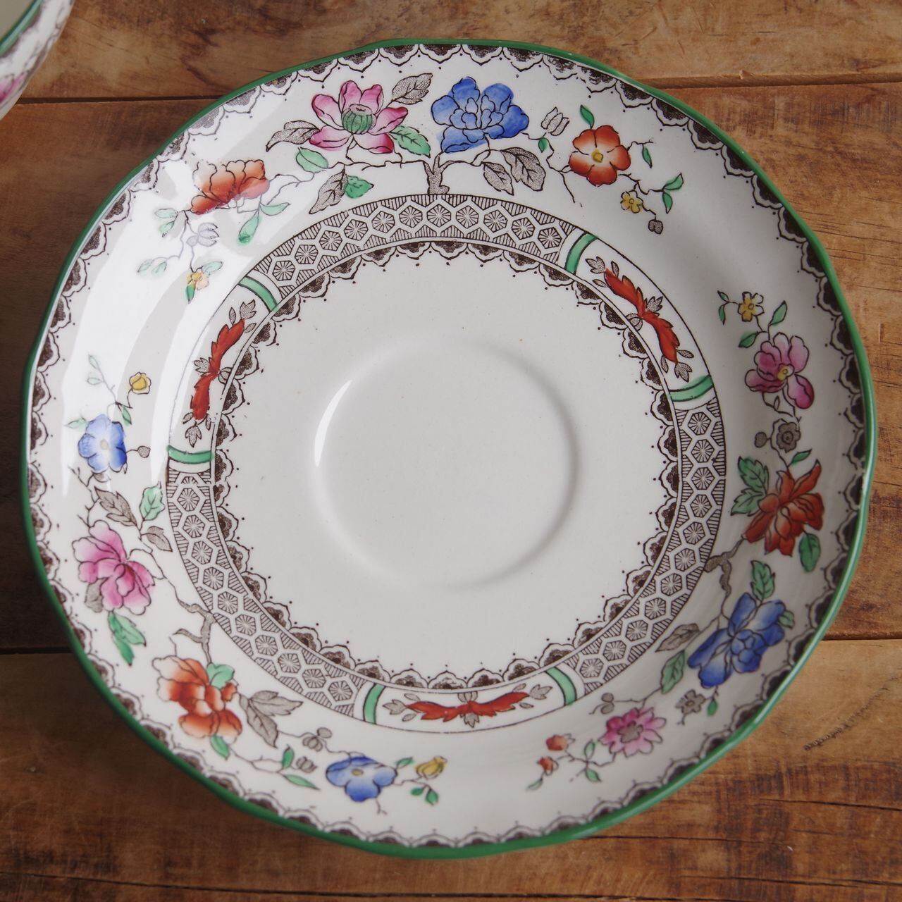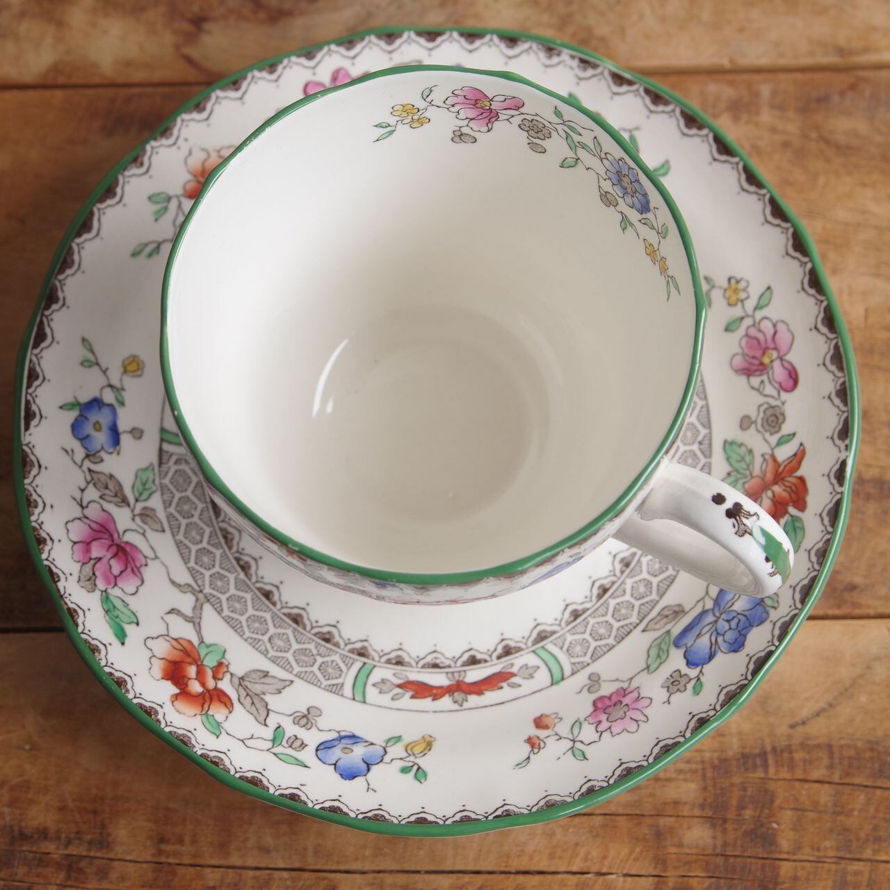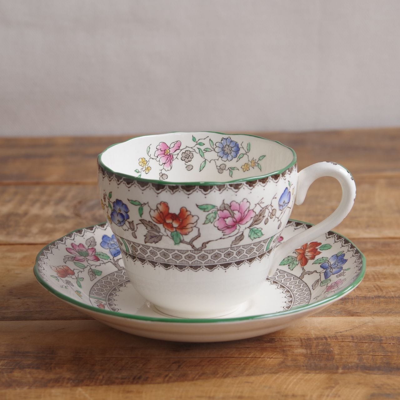 スポード チャイニーズローズ 花柄 コーヒーカップ&ソーサー イギリス アンティーク 食器 陶器 #250909-1,2 SPODE Chinese Rose ヴィンテージ レトロ オリエンタル グリーン デュオ CS ティーカップ