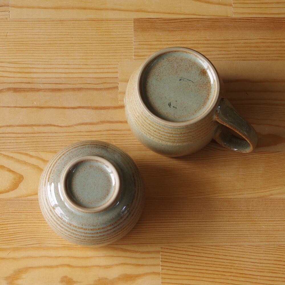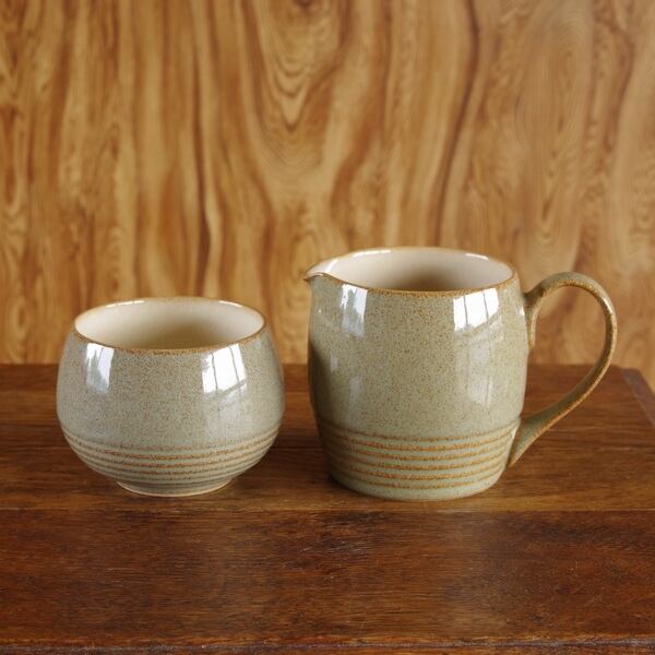 丸みのある形と、落ち着いた渋めのグリーン色の釉薬がやさしい雰囲気のシュガー&ミルクです。