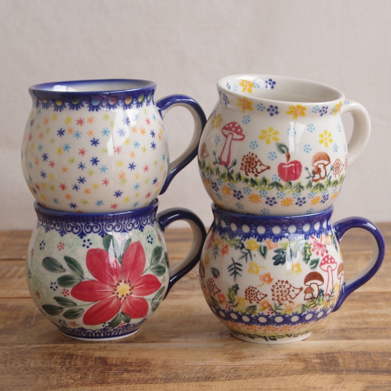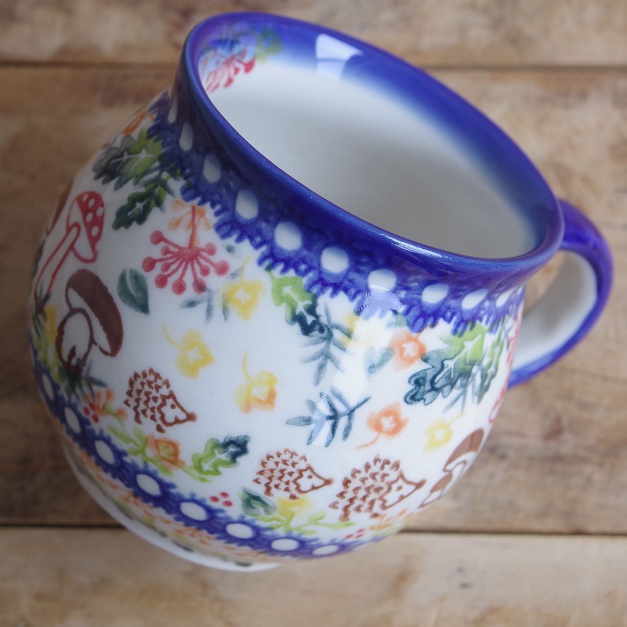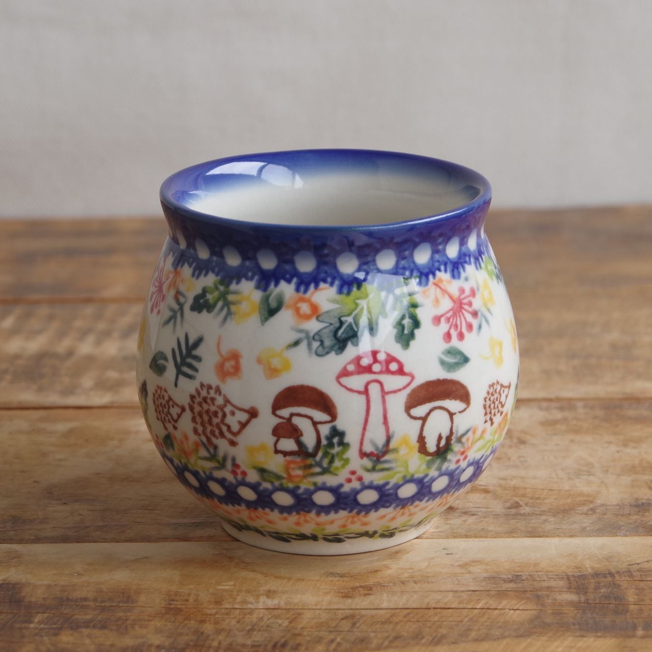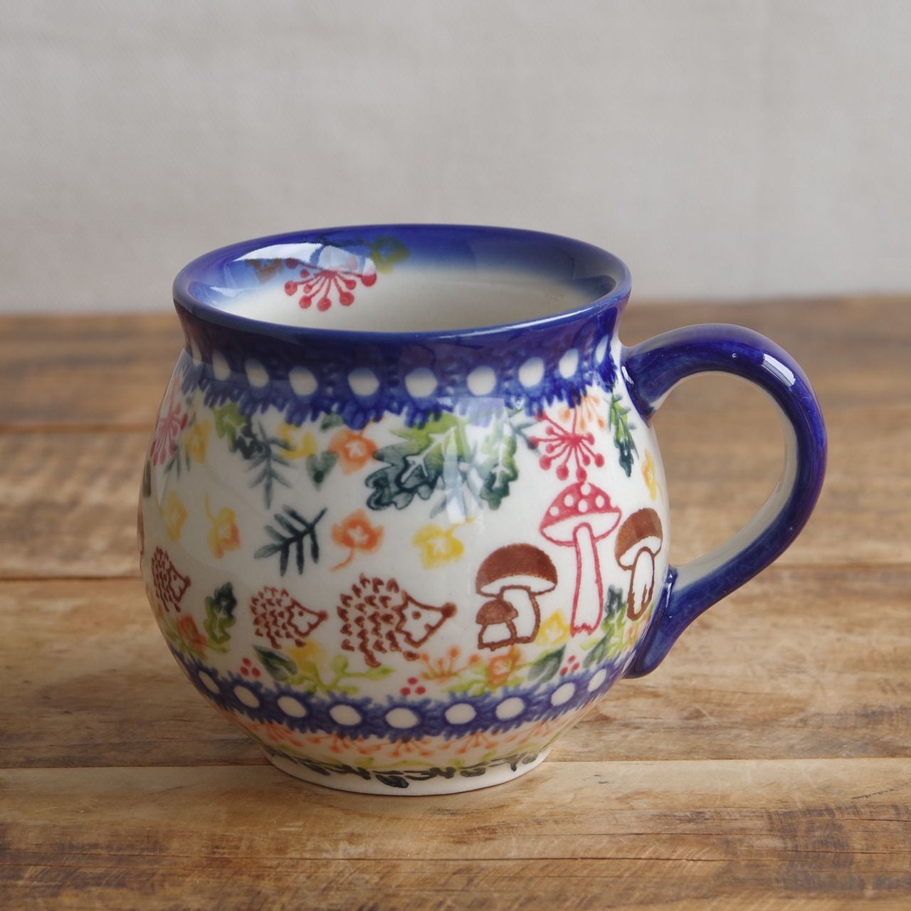 SOLD OUT【アウトレット】【新品】 ポーランド食器 ポーリッシュポタリー マグカップ ハリネズミ キノコ 森 300ml v383-u486 コーヒーカップ ボレスワヴィエツ陶器 Boleslawiec かわいい バブルマグ M 東欧雑貨 レトロ アニマル 森