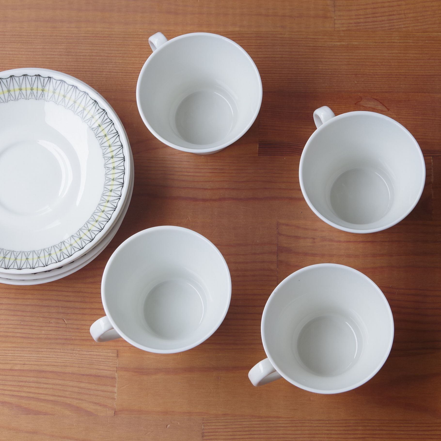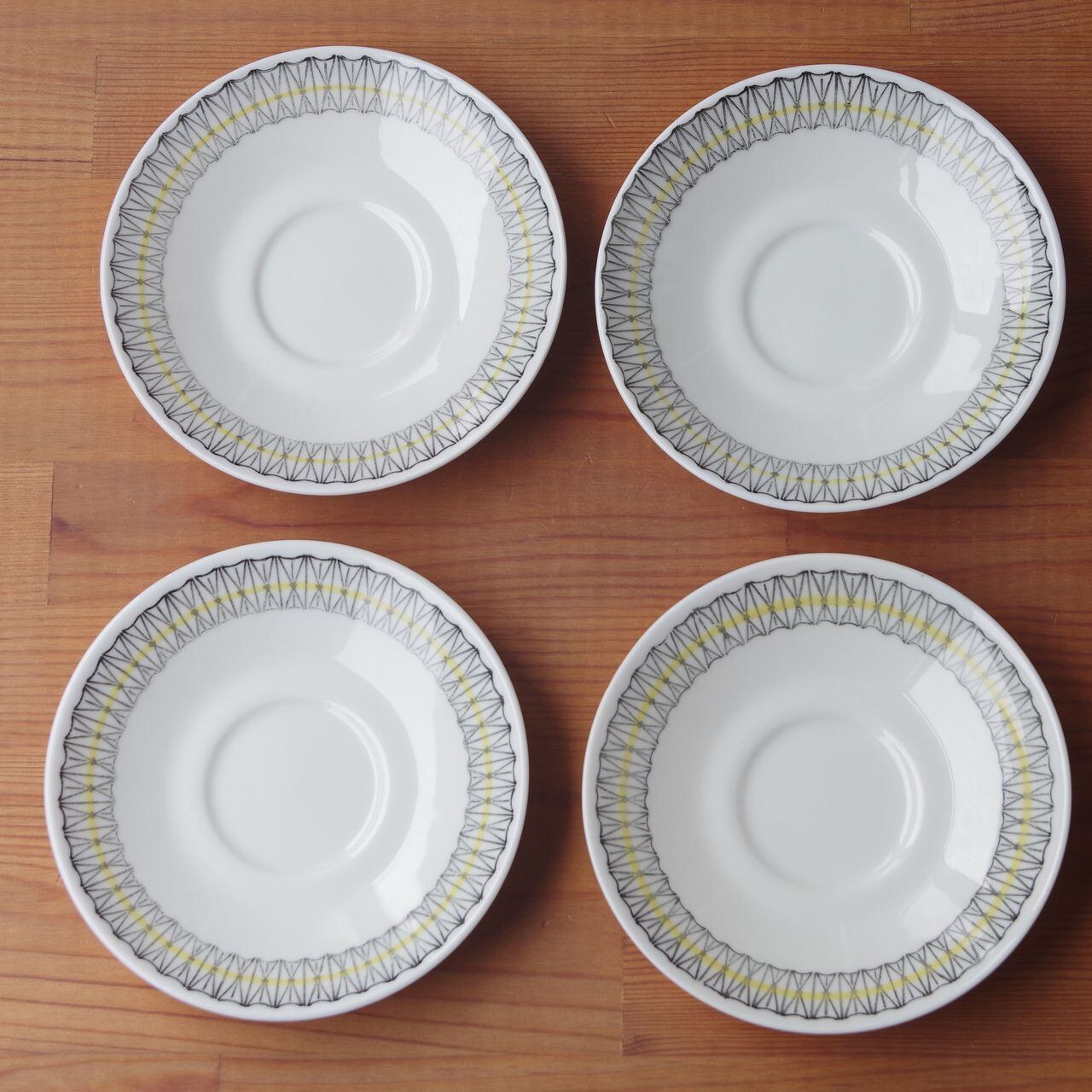 ウプサラエクビー ゲフレ クリス Upsala Ekeby Gefle Kryss カップ&ソーサー 小さめ #250923-7~10 北欧 スウェーデン製 ヴィンテージ アンティーク 食器 陶器 ミニサイズ レトロ コーヒーカップ 幾何学模様