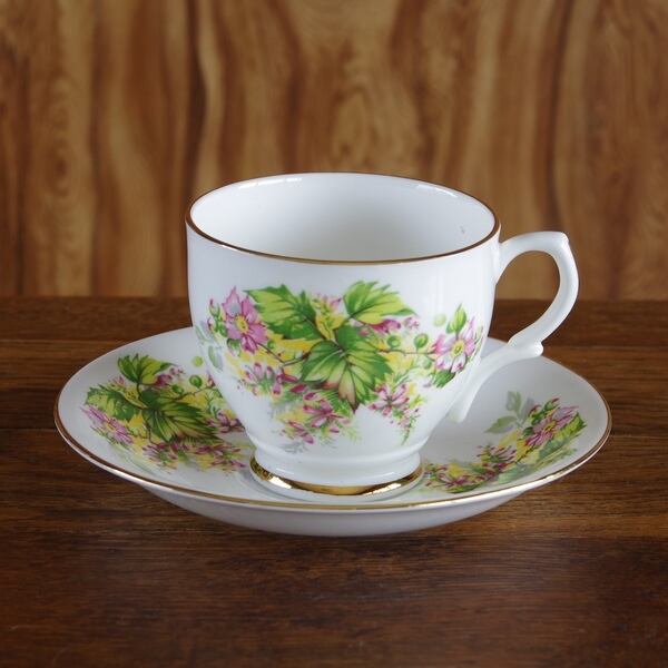 イギリス製 ヴィンテージ食器 Clare England ピンク花柄 コーヒーカップ ソーサー #180621-4 アンティーク レトロでかわいいボタニカル柄 クレア