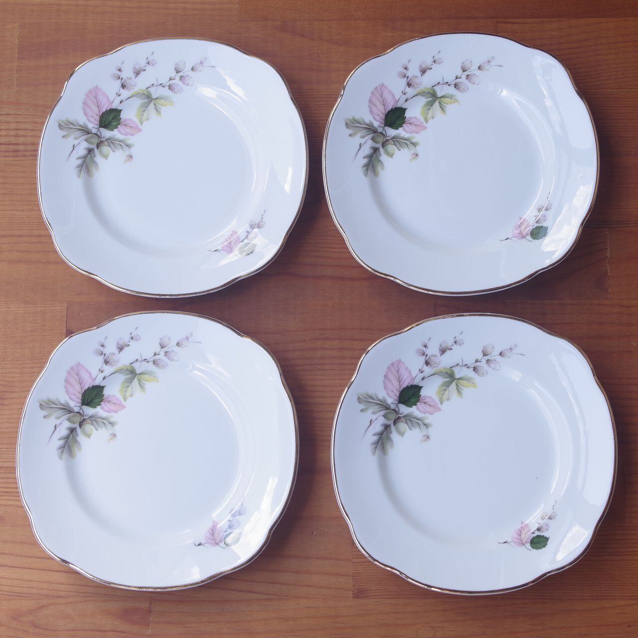 Duchess ダッチェス どんぐり柄 デザートプレート ケーキ皿 16cm #251001-1~6 パン皿 お皿 四角い 小さめ 菓子皿 イギリス ヴィンテージ食器 レトロ ミッドセンチュリー