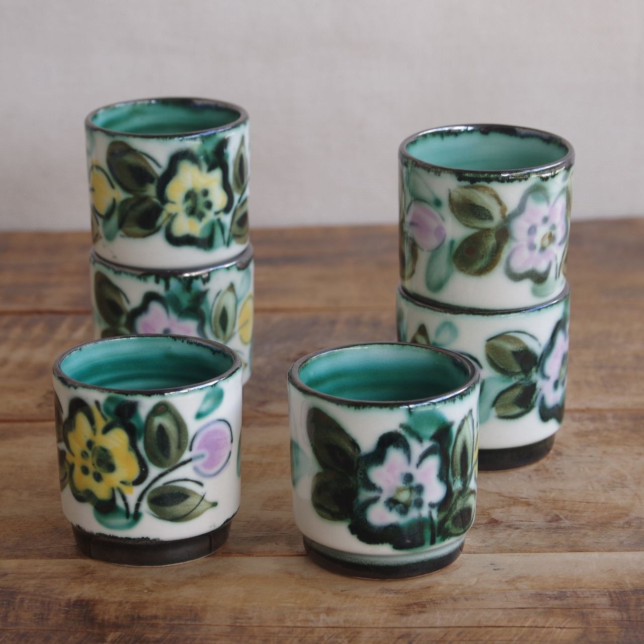 ベルギー製 ボッホ インザムード Boch In the Mood 手描き 花柄 エッグカップ #251001-1~6 ヴィンテージ 食器 陶磁器 Belgium レトロ ロイヤルボッホ キッチン 雑貨 エッグスタンド 玉子立て グリーン ピンク 黄色