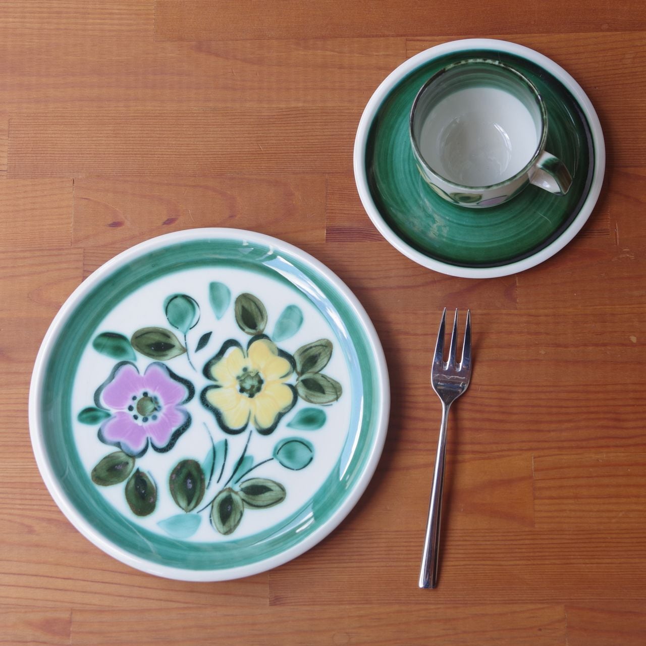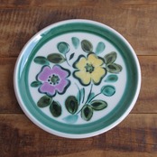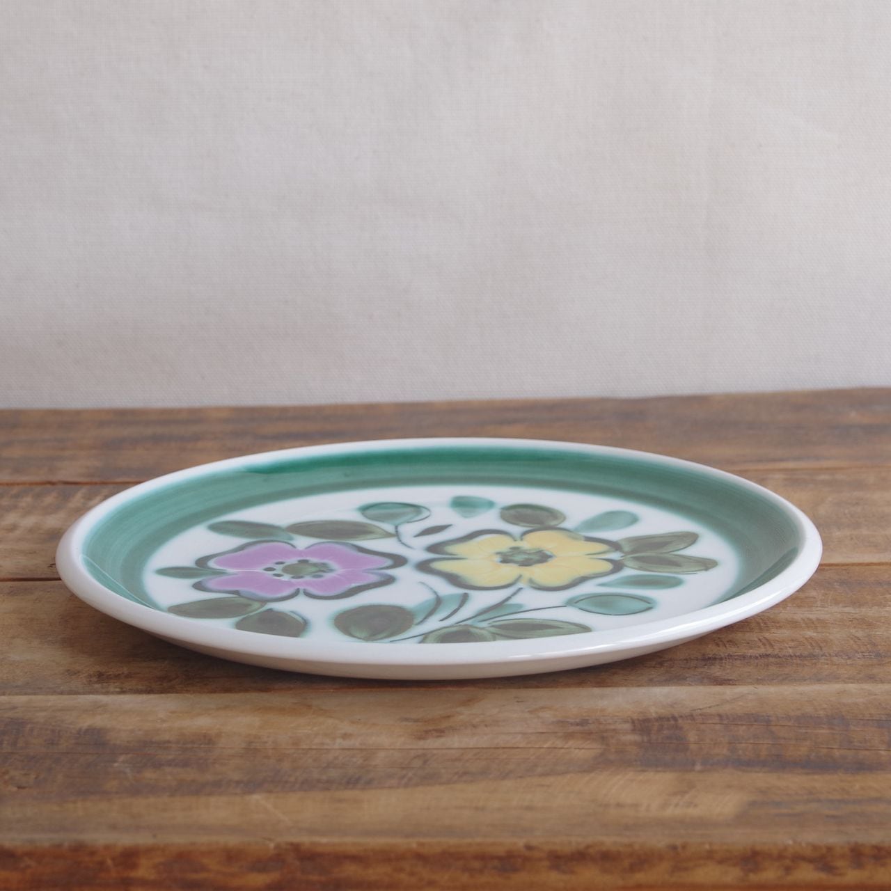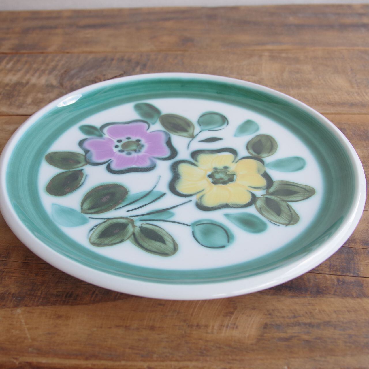 ベルギー製 ボッホ インザムード Boch In the Mood 手描き 花柄 デザートプレート ケーキ皿 21cm #251001-01 ヴィンテージ 食器 陶磁器 Belgium レトロ ロイヤルボッホ キッチン 雑貨 お皿 ランチプレート トースト サラダ グリーン ピンク 黄色 かわいい