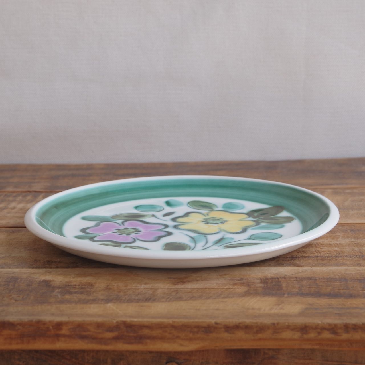 ベルギー製 ボッホ インザムード Boch In the Mood 手描き 花柄 デザートプレート ケーキ皿 21cm #251001-02 ヴィンテージ 食器 陶磁器 Belgium レトロ ロイヤルボッホ キッチン 雑貨 お皿 ランチプレート トースト サラダ グリーン ピンク 黄色 かわいい