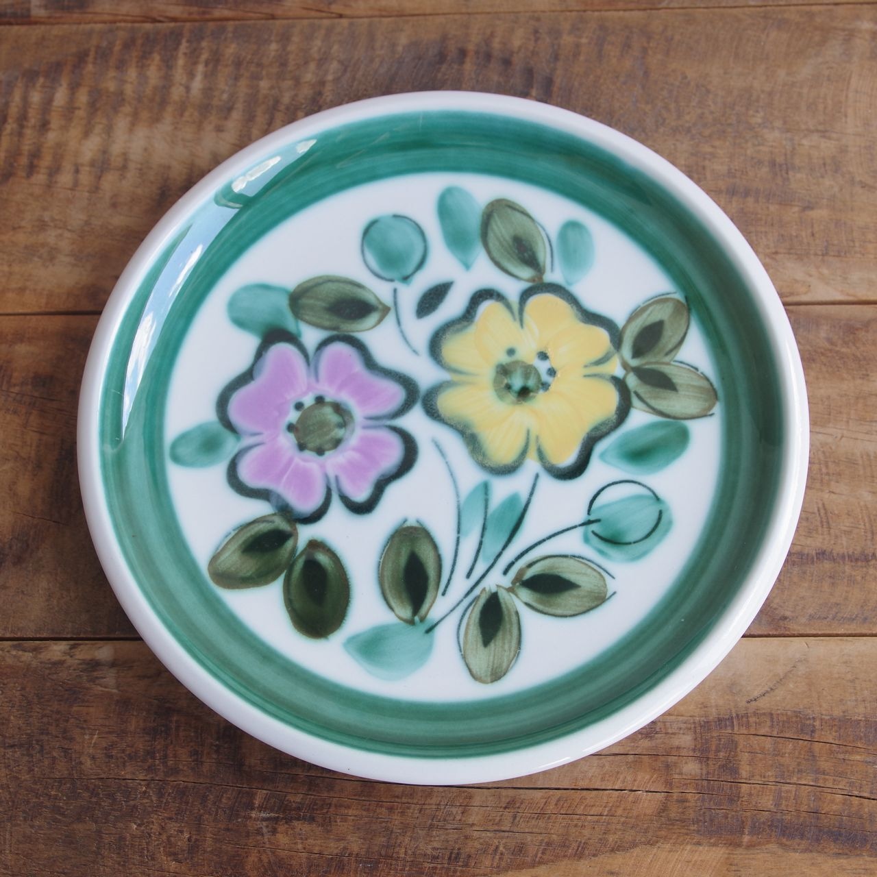 ベルギー製 ボッホ インザムード Boch In the Mood 手描き 花柄 デザートプレート ケーキ皿 21cm #251001-04 ヴィンテージ 食器 陶磁器 Belgium レトロ ロイヤルボッホ キッチン 雑貨 お皿 ランチプレート トースト サラダ グリーン ピンク 黄色 かわいい