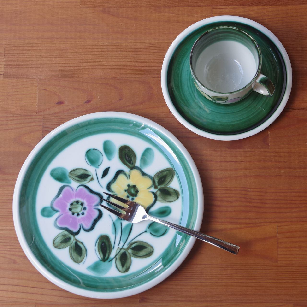 ベルギー製 ボッホ インザムード Boch In the Mood 手描き 花柄 デザートプレート ケーキ皿 21cm #251001-05 ヴィンテージ 食器 陶磁器 Belgium レトロ ロイヤルボッホ キッチン 雑貨 お皿 ランチプレート トースト サラダ グリーン ピンク 黄色 かわいい
