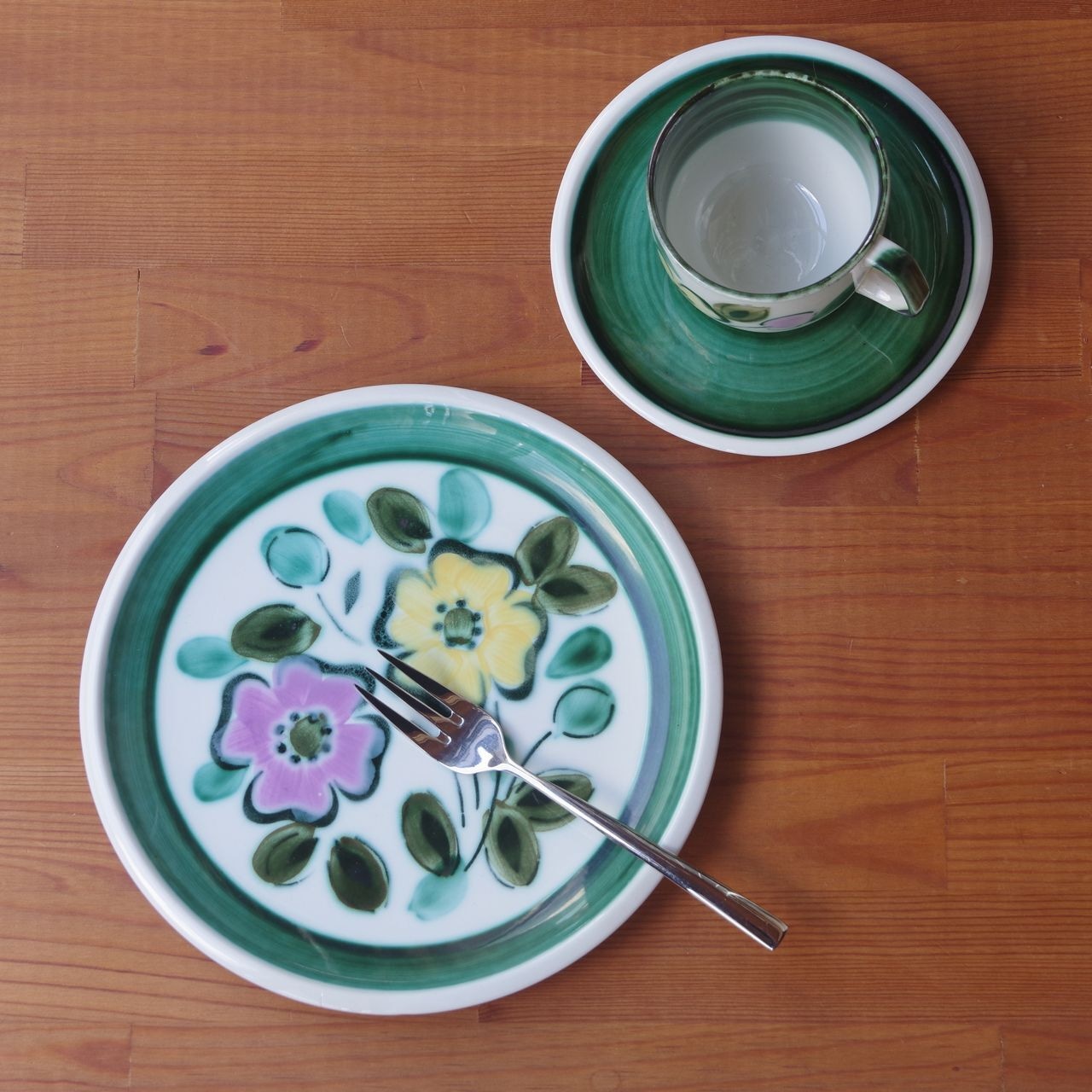 ベルギー製 ボッホ インザムード Boch In the Mood 手描き 花柄 デザートプレート ケーキ皿 21cm #251001-06 ヴィンテージ 食器 陶磁器 Belgium レトロ ロイヤルボッホ キッチン 雑貨 お皿 ランチプレート トースト サラダ グリーン ピンク 黄色 かわいい