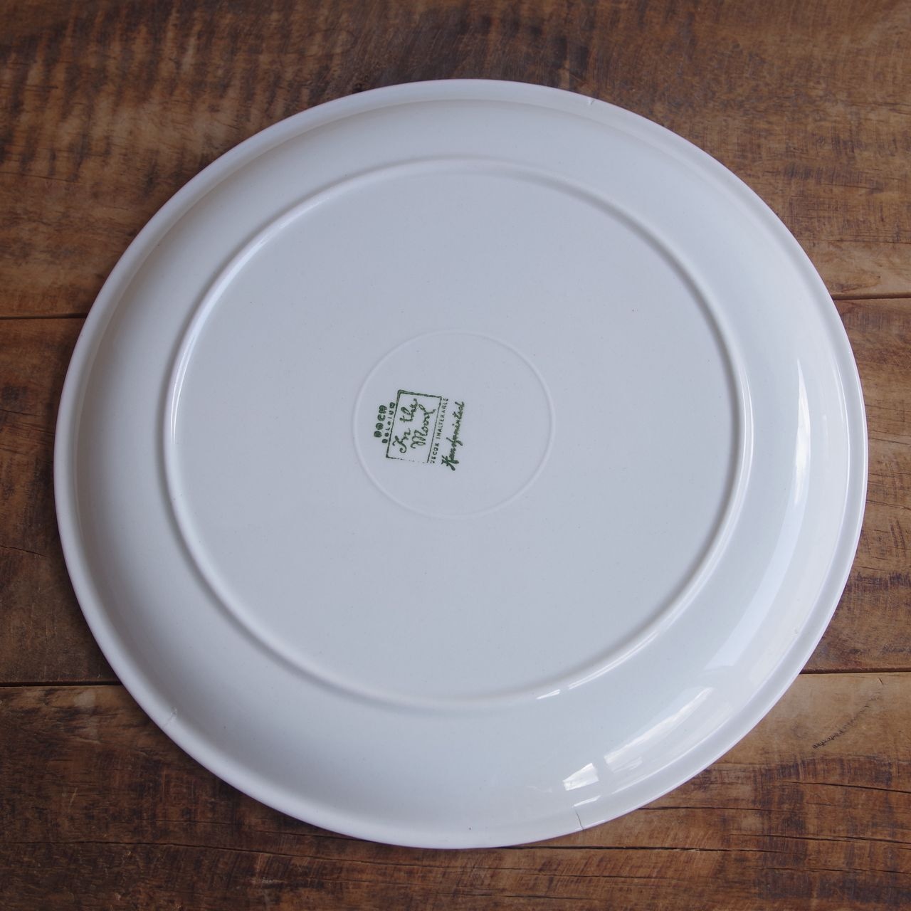 こちらのお皿には、ふちの部分に一か所、製造時にできたひび割れ(粘土の状態でできた地の陶器のシワ)があります。