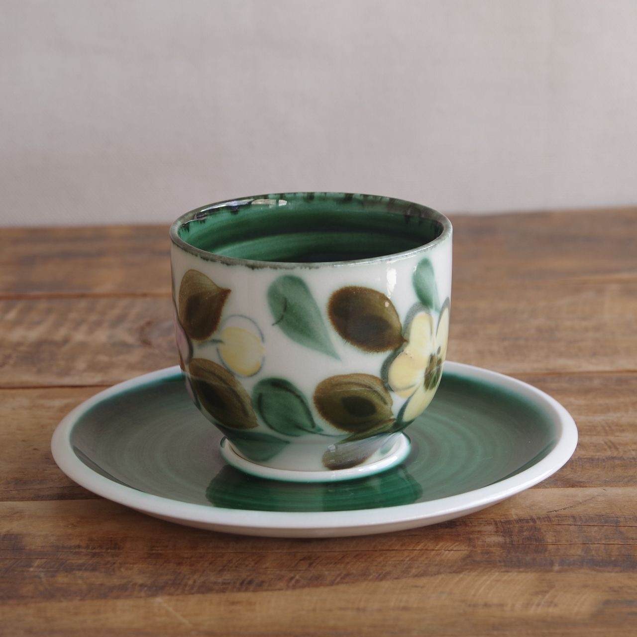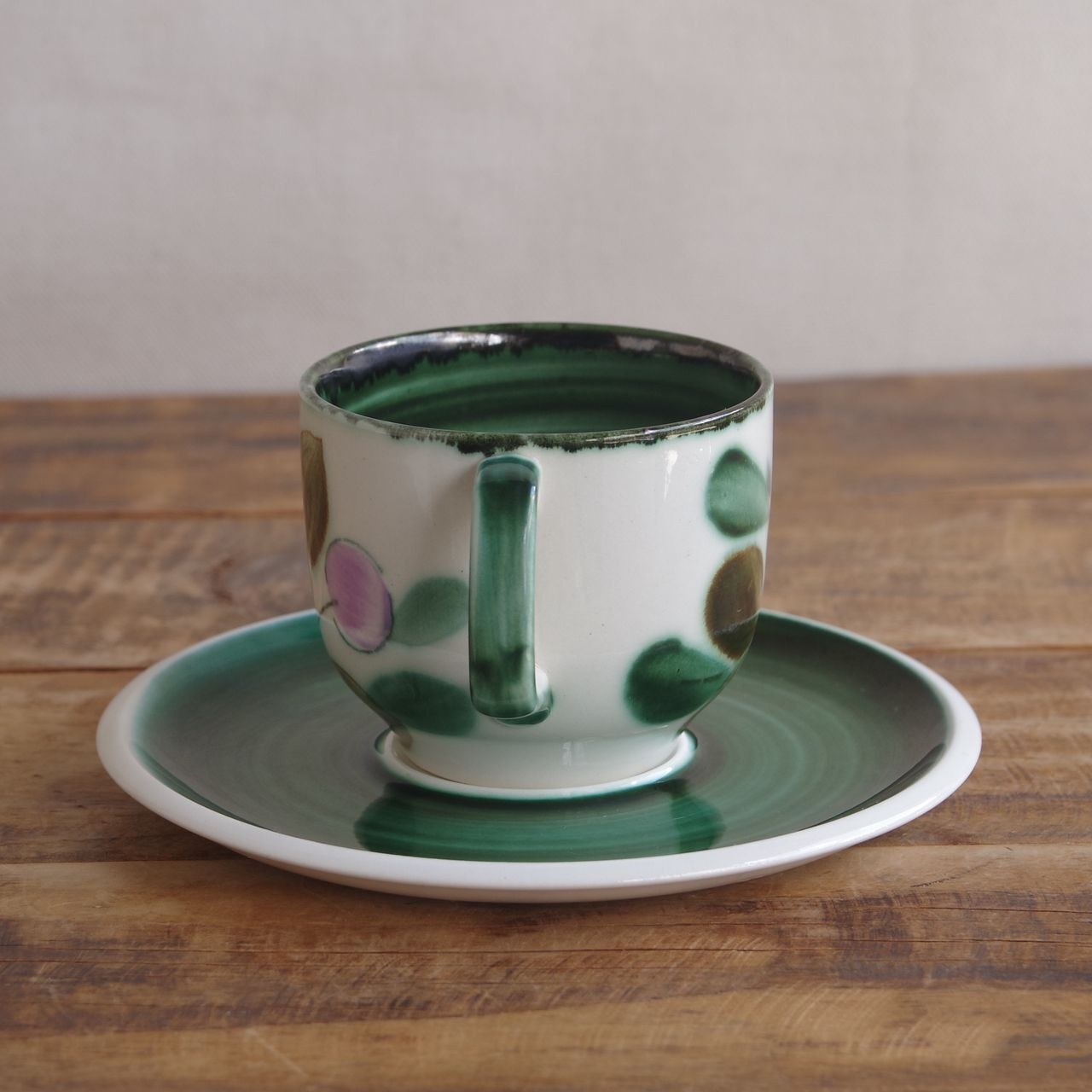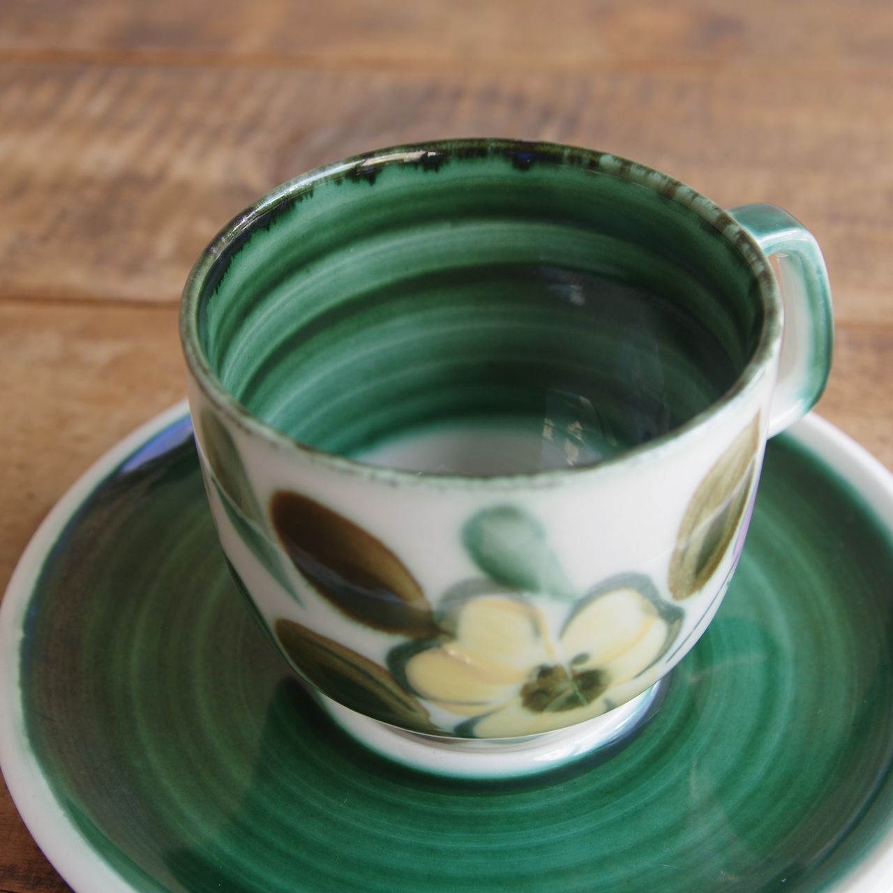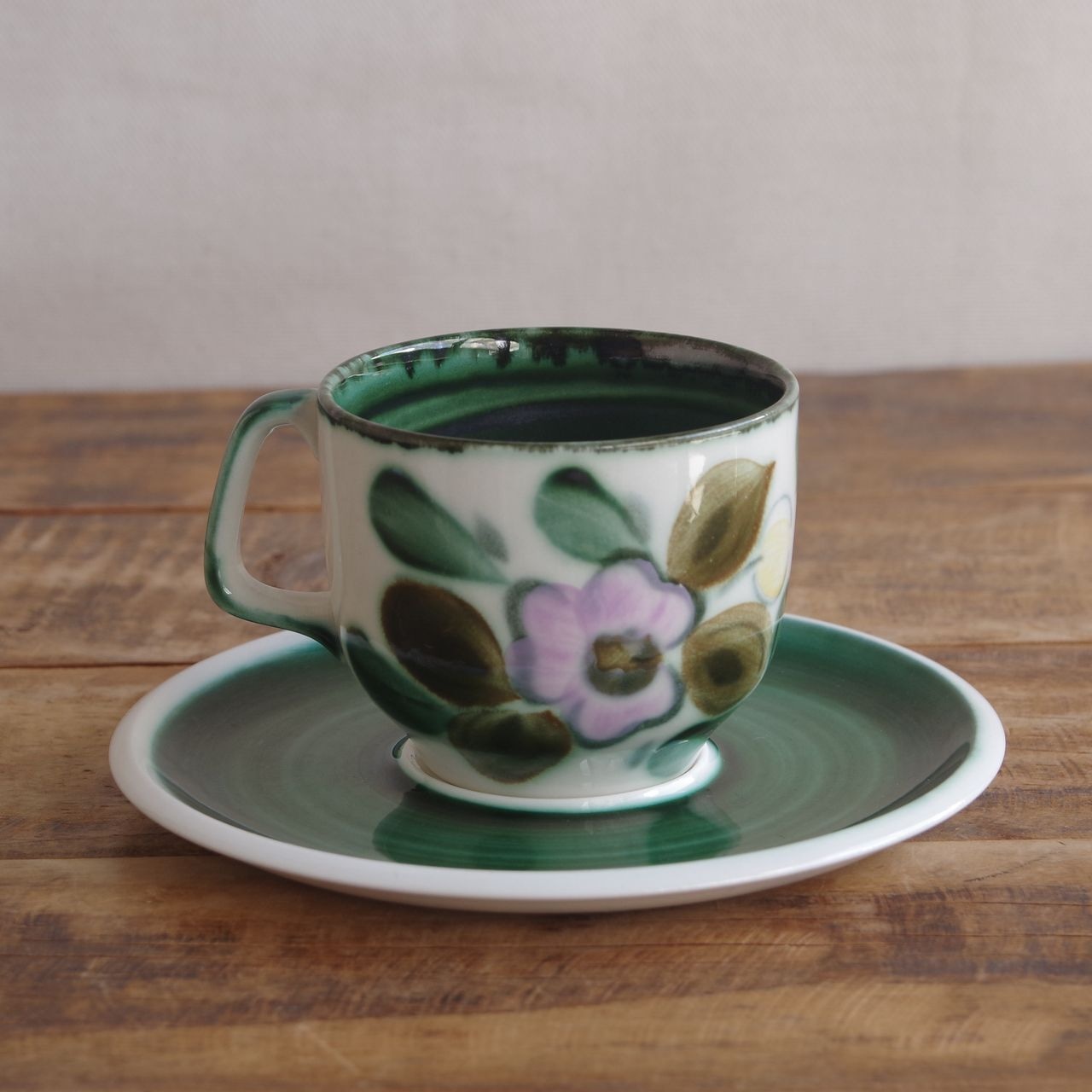 ベルギー製 ボッホ インザムード Boch In the Mood 手描き 花柄 コーヒーカップ&ソーサー #251001-02 ヴィンテージ 食器 陶磁器 Belgium レトロ ロイヤルボッホ キッチン 雑貨 ティーカップ CS デュオ グリーン ピンク 黄色 かわいい