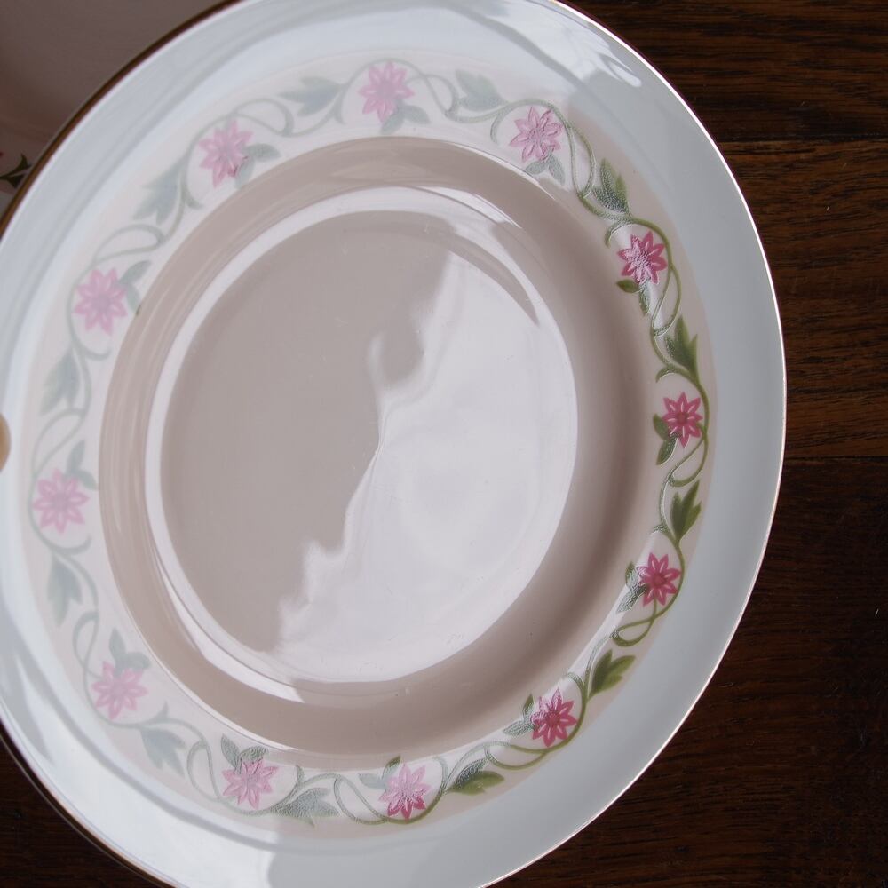 リムの部分に、ピンクの小さな星のような花の絵柄と、