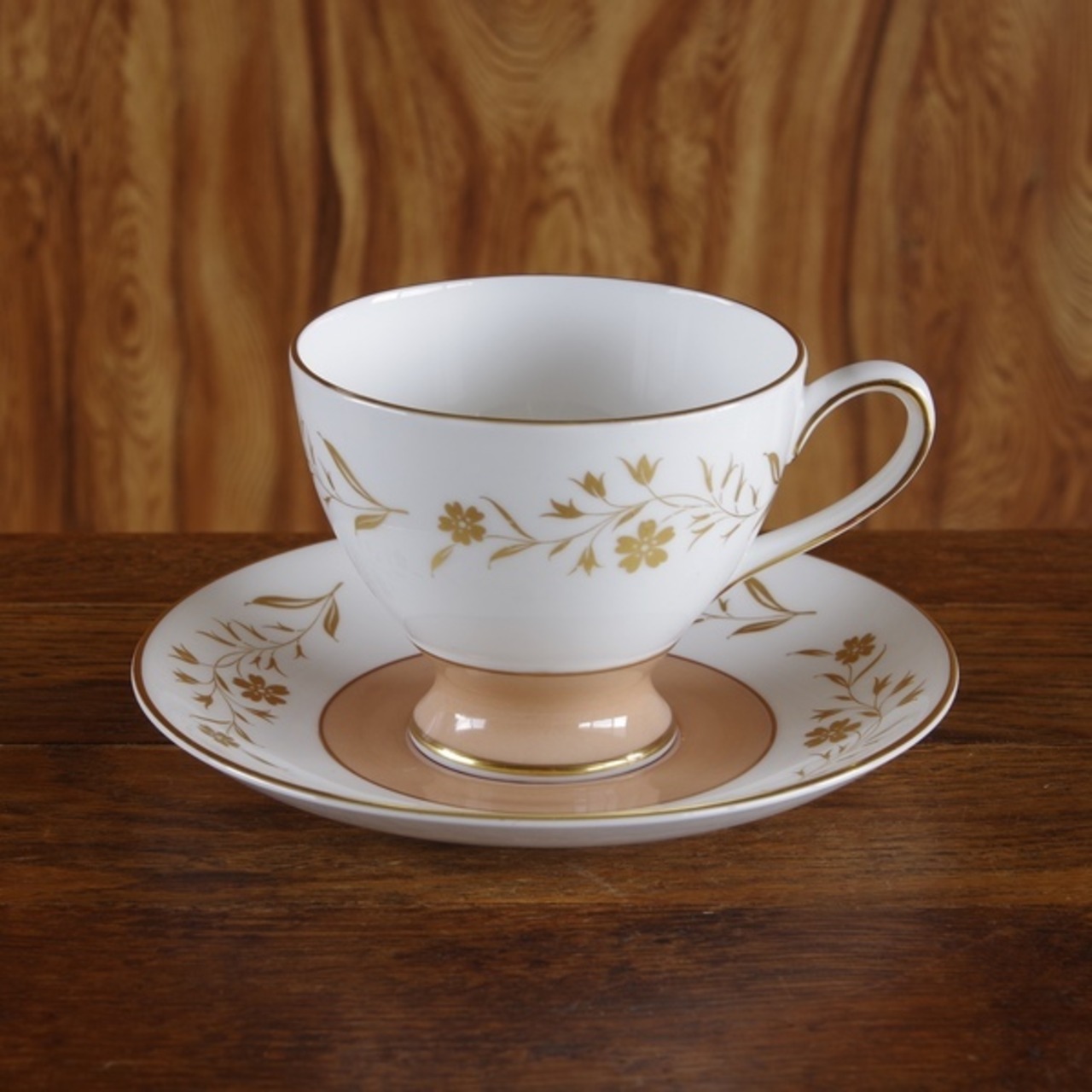 スージー・クーパー ゴールド花柄 コーヒーカップ ソーサー #180703-2 ヴィンテージ食器 アンティーク レトロ Susie Cooper