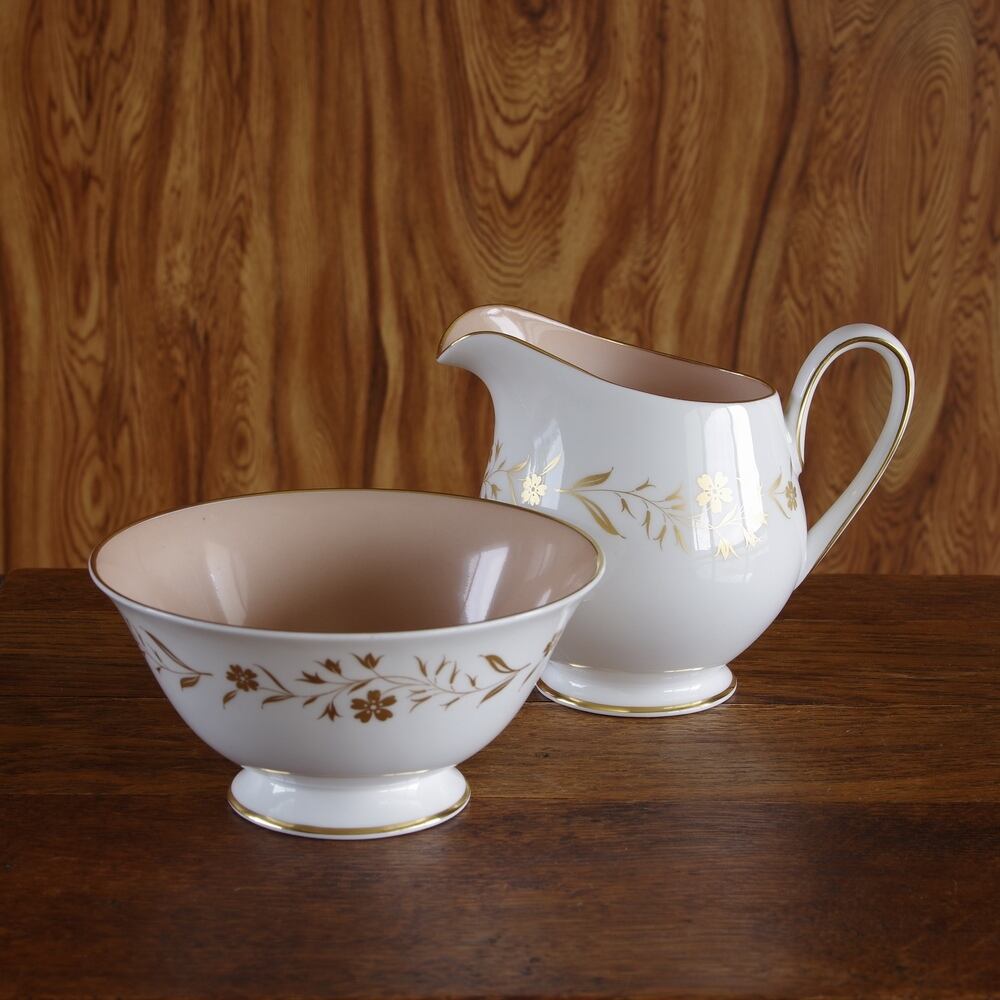 ヴィンテージ雑貨 スージークーパー ピンクベージュ ゴールド花柄 クリーマー #180703 イギリス製 陶磁器 アンティーク 食器 Susie Cooper