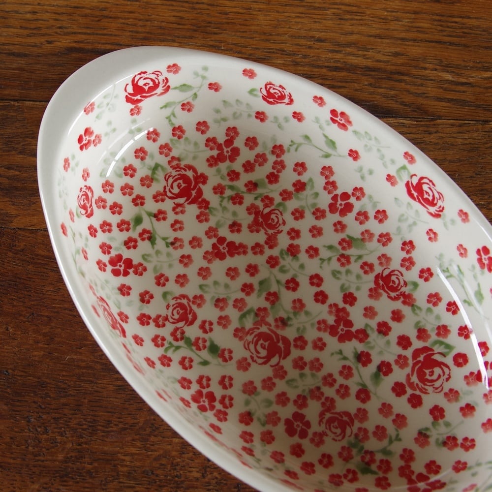 【新品】 ポーランド食器 ポーリッシュポタリー グラタン皿 赤いバラ 花柄 P144-GZ34 ボレスワヴィエツ陶器 Boleslawiec オーバルボウル エレガント