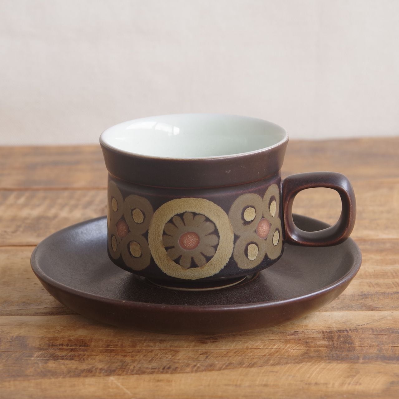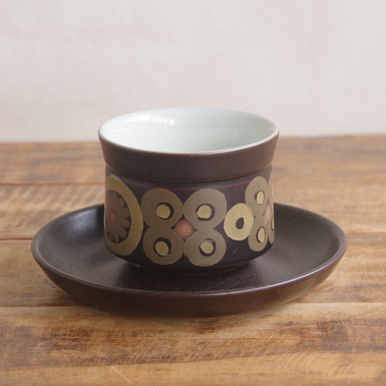 デンビー アラベスク ティーカップ&ソーサー DENBY Arabesque イギリス ヴィンテージ食器 #251015-7 アンティーク レトロ モダン 花柄 渋め おしゃれ ゴールド ダークブラウン 陶器