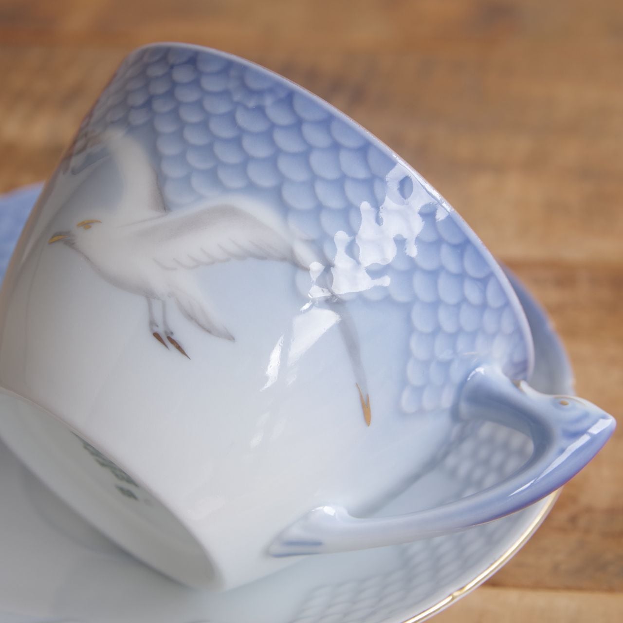 ビング・オー・グレンダール シーガル かもめ柄 ティーカップ&ソーサー 103 Bing & Grondahl Seagull #251020-6 北欧 デンマーク ヴィンテージ アンティーク 食器 陶磁器 ブルー グラデーション 金彩 鳥 カモメ 青