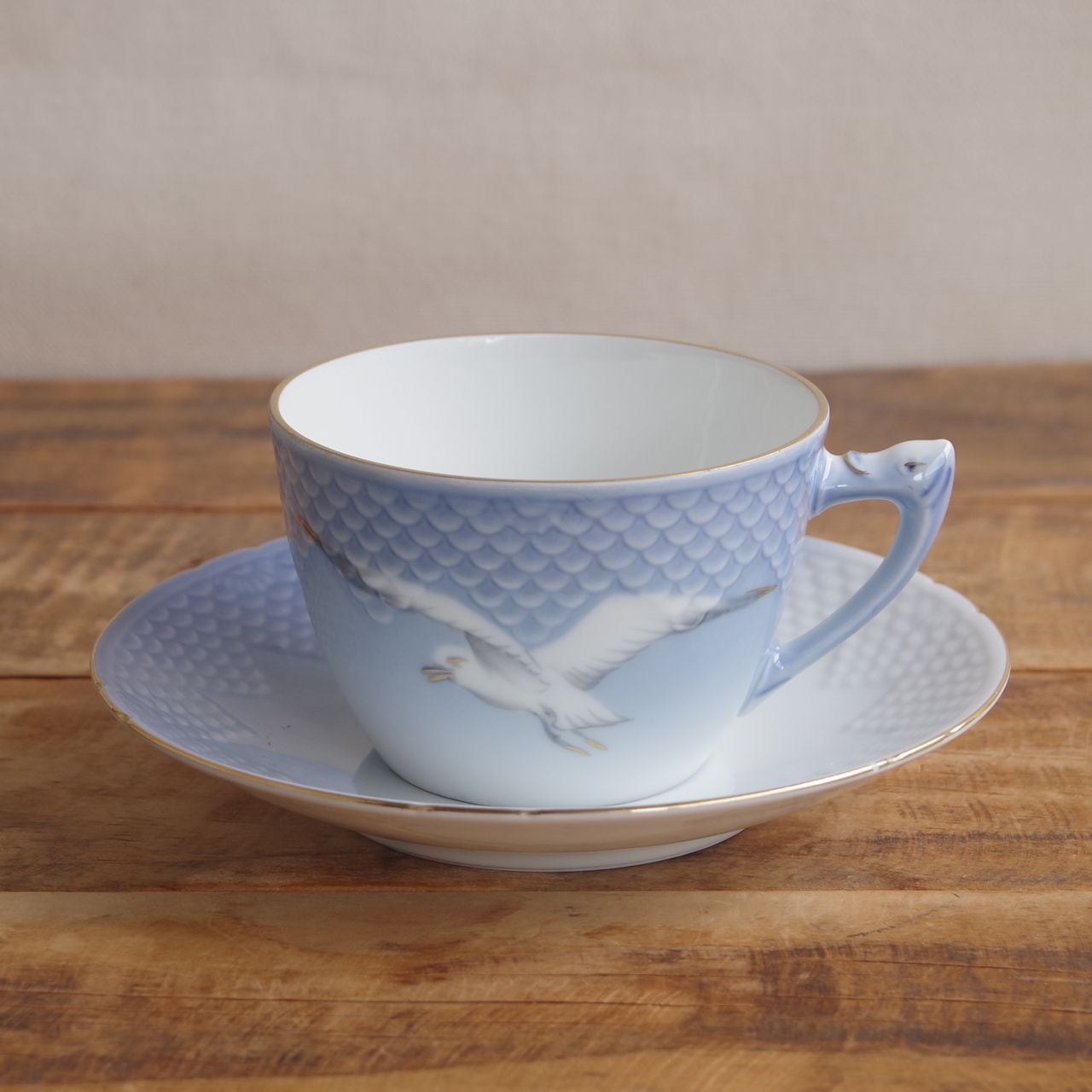 ビング・オー・グレンダール シーガル かもめ柄 ティーカップ&ソーサー 103 Bing & Grondahl Seagull #251020-7 北欧 デンマーク ヴィンテージ アンティーク 食器 陶磁器 ブルー グラデーション 金彩 鳥 カモメ 青