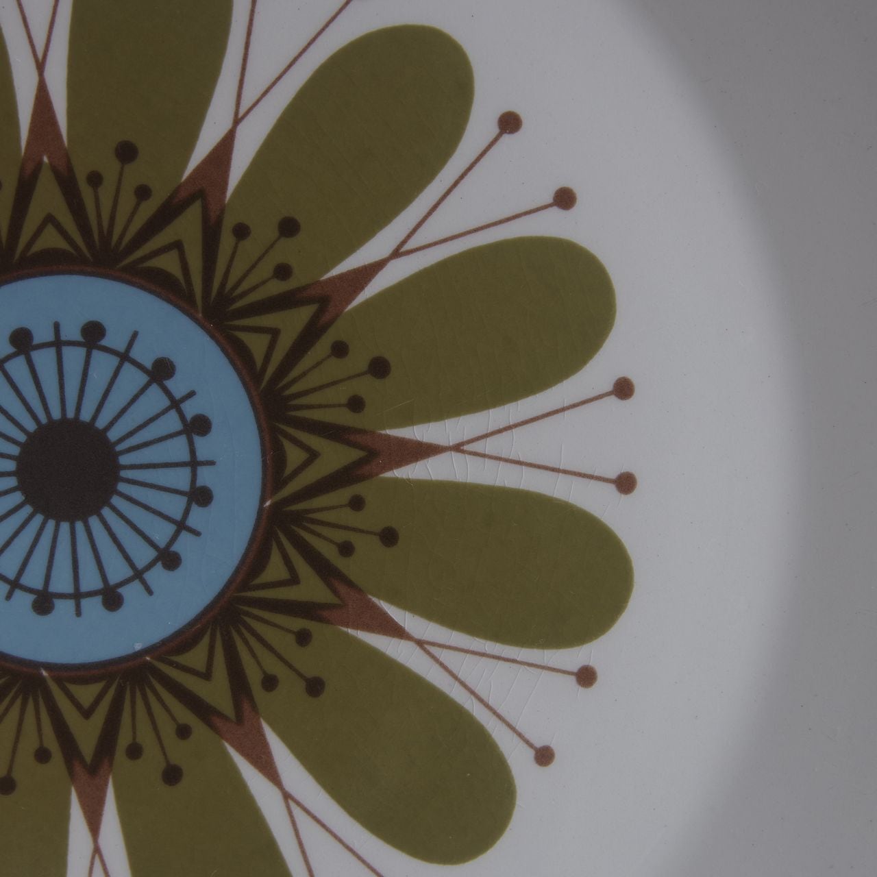 J&G Meakin ミーキン カーキ 花柄 幾何学模様 ランチプレート お皿 23cm #251020 ヴィンテージ 食器 陶器 レトロ イギリス製 スペースエイジ 英国 キッチン 雑貨 テーブルウェア