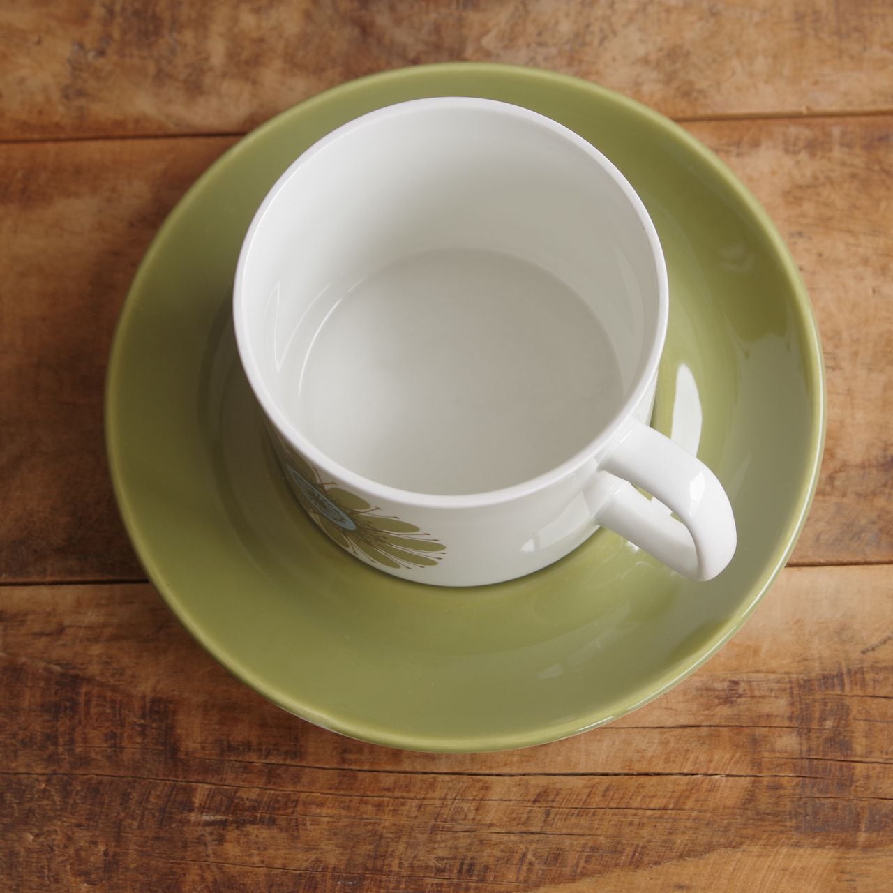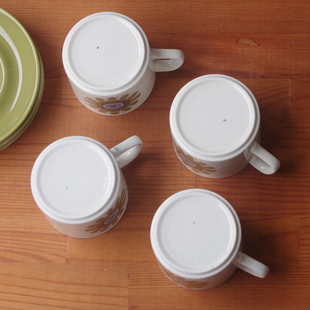 J&G Meakin ミーキン カーキ 花柄 幾何学模様 カップ&ソーサー コーヒーカップ ティーカップ #251020-9~12 ヴィンテージ 食器 陶器 レトロ イギリス製 スペースエイジ 英国 キッチン 雑貨 テーブルウェア