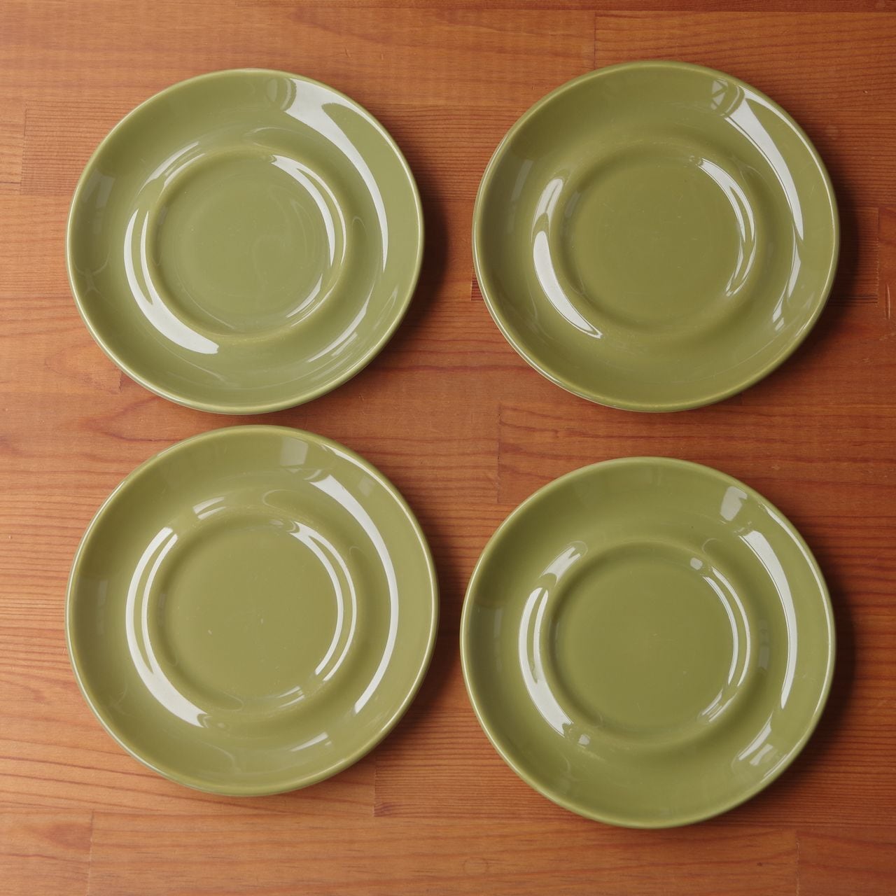 ソーサーは、表側の面がカーキグリーンに塗られており、カップを置く中央部分の周辺が丸く盛り上がっています。