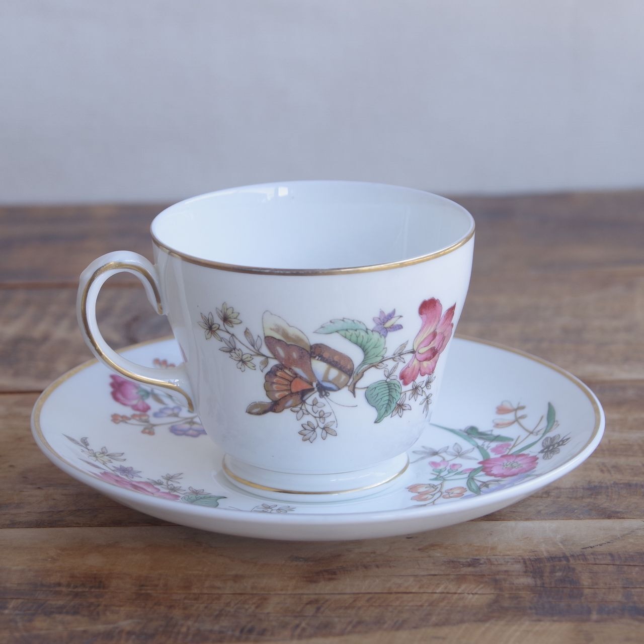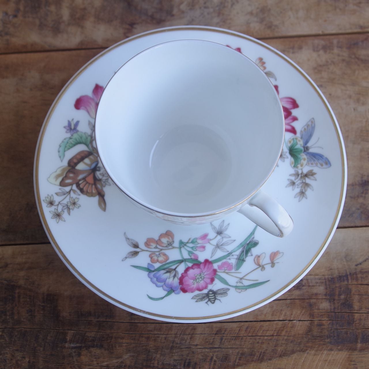 ウェッジウッド サンドン 蝶 みつばち 花柄 コーヒーカップ&ソーサー ヴィンテージ 食器 #251030-3 アンティーク 陶磁器 オリエンタル Wedgwood Sandon ティーカップ CS デュオ Cup saucer